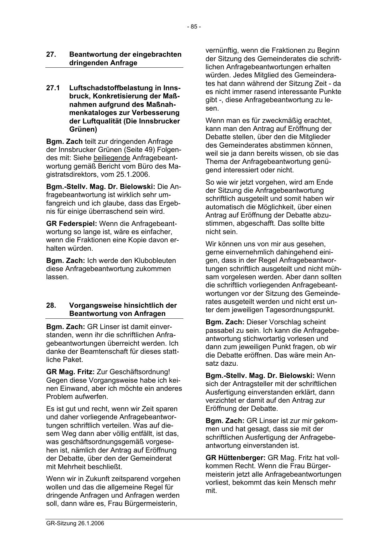 der Innsbrucker Grünen (Seite 49) Folgendes mit: Siehe beiliegende Anfragebeantwortung gemäß Bericht vom Büro des Magistratsdirektors, vom 25.1.2006.