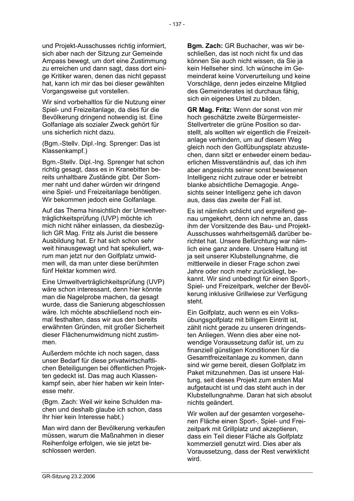 Bgm. Zach: GR Buchacher, was wir beschließen, das ist noch nicht fix und das