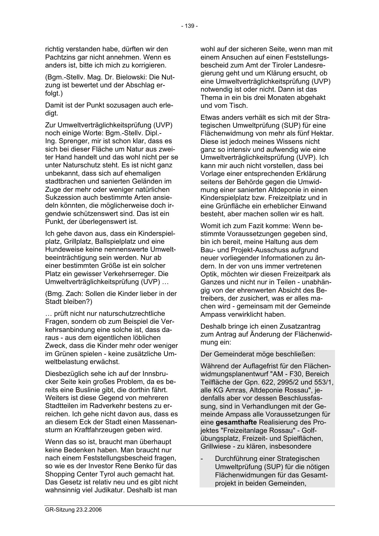 alle KG Amras, Altdeponie Rossau", jedenfalls aber vor dessen Beschlussfassung, sind in Verhandlungen mit der Gemeinde Ampass alle Voraussetzungen für