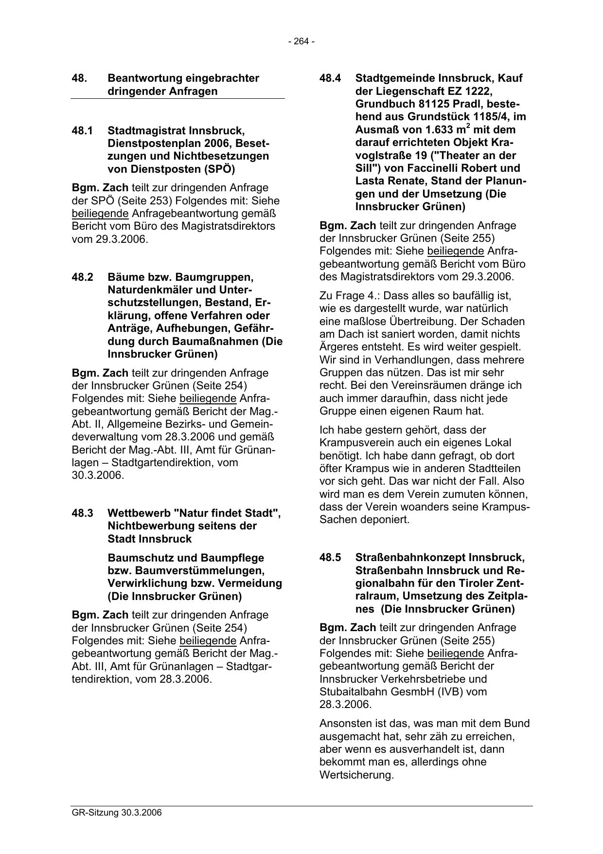 Folgendes mit: Siehe beiliegende Anfragebeantwortung gemäß Bericht der Mag.Abt. II, Allgemeine Bezirks- und Gemeindeverwaltung vom 28.3.2006 und gemäß