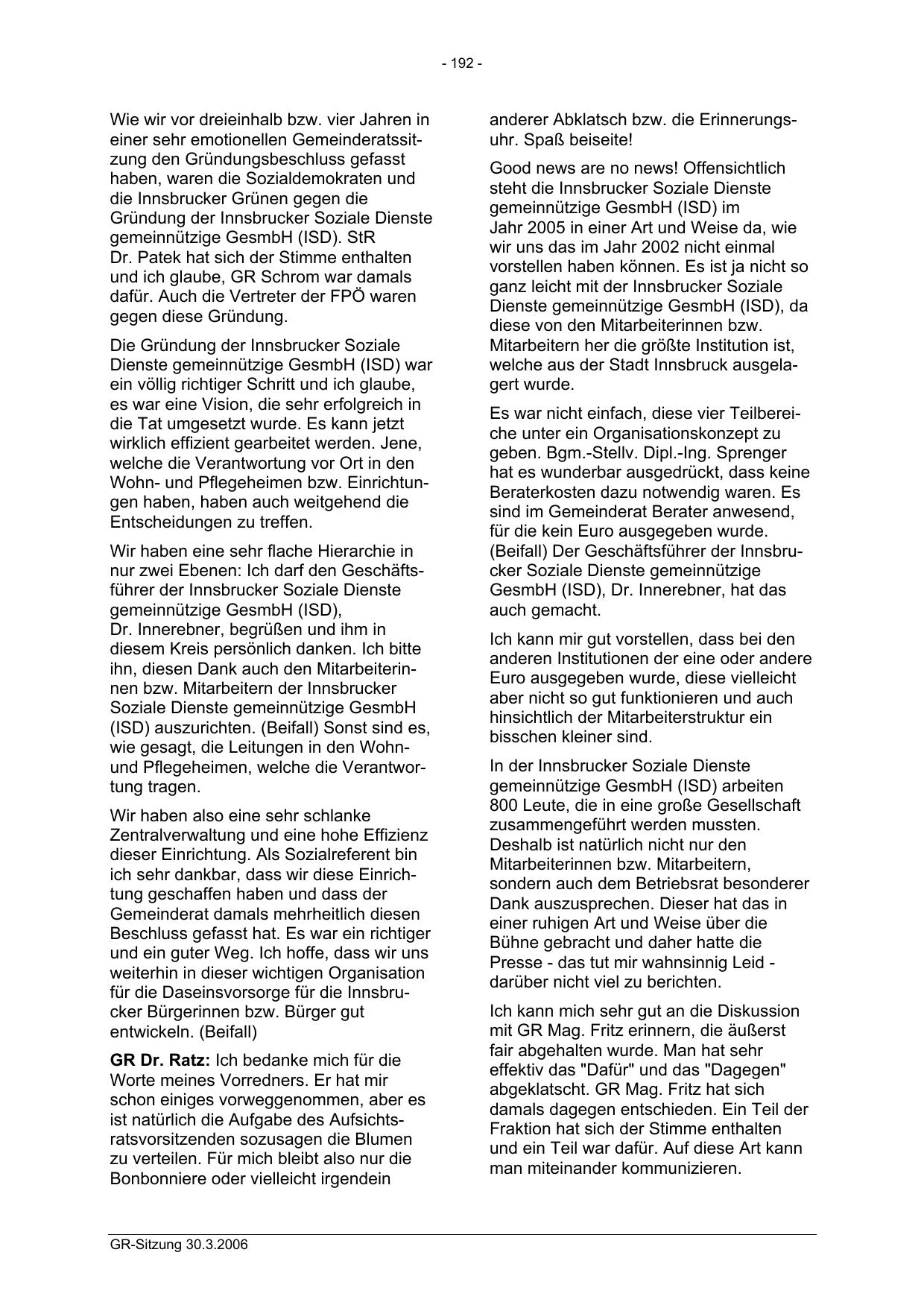 (Beifall) Der Geschäftsführer der Innsbrucker Soziale Dienste gemeinnützige