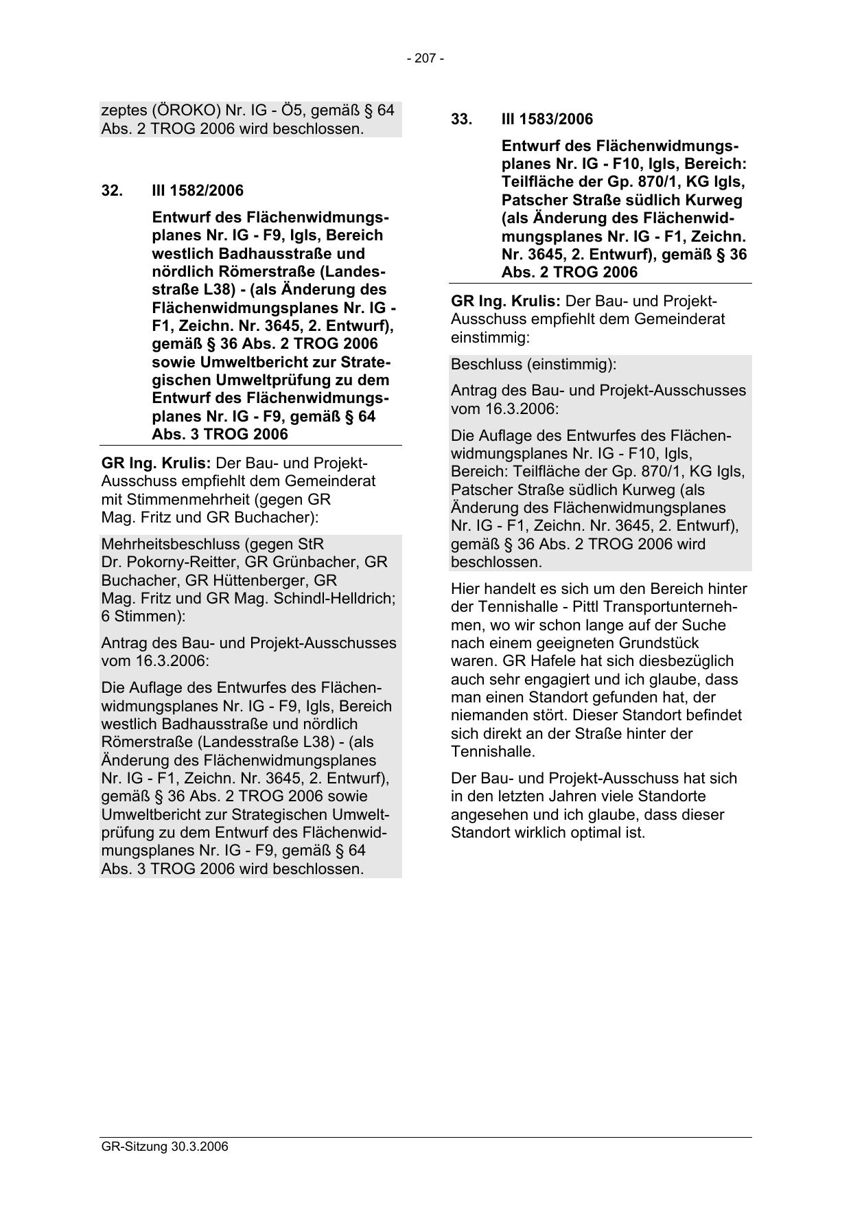 GR Ing. Krulis: Der Bau- und ProjektAusschuss empfiehlt dem Gemeinderat