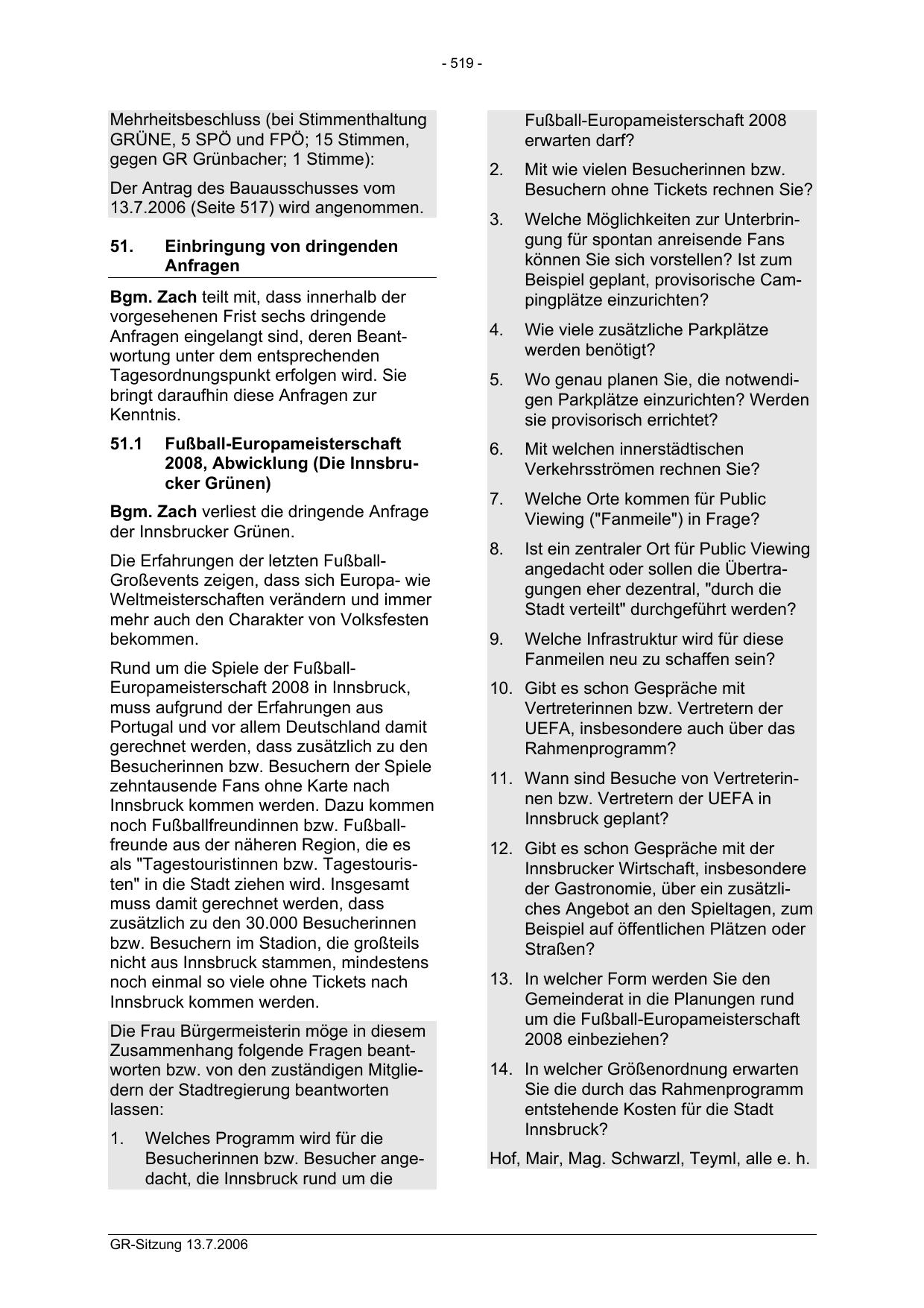 Zusammenhang folgende Fragen beantworten bzw. von den zuständigen Mitgliedern der Stadtregierung beantworten