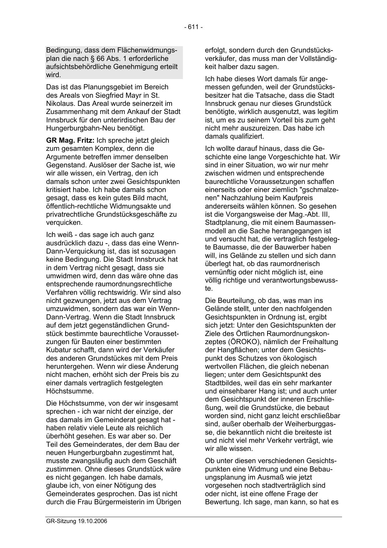 umzuwidmen, sondern das war ein WennDann-Vertrag. Wenn die Stadt Innsbruck