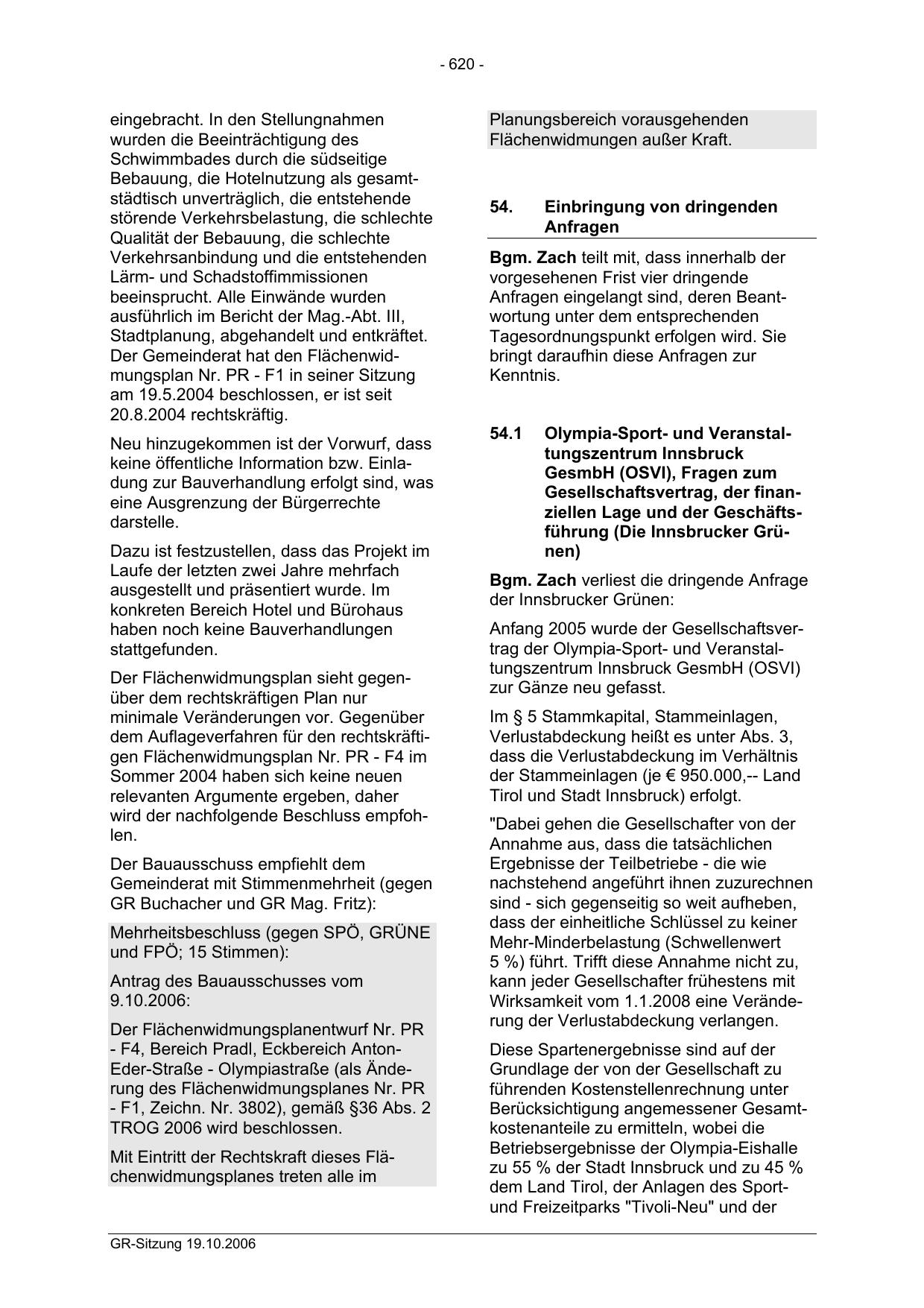 Anfang 2005 wurde der Gesellschaftsvertrag der Olympia-Sport- und Veranstaltungszentrum Innsbruck GesmbH (OSVI)