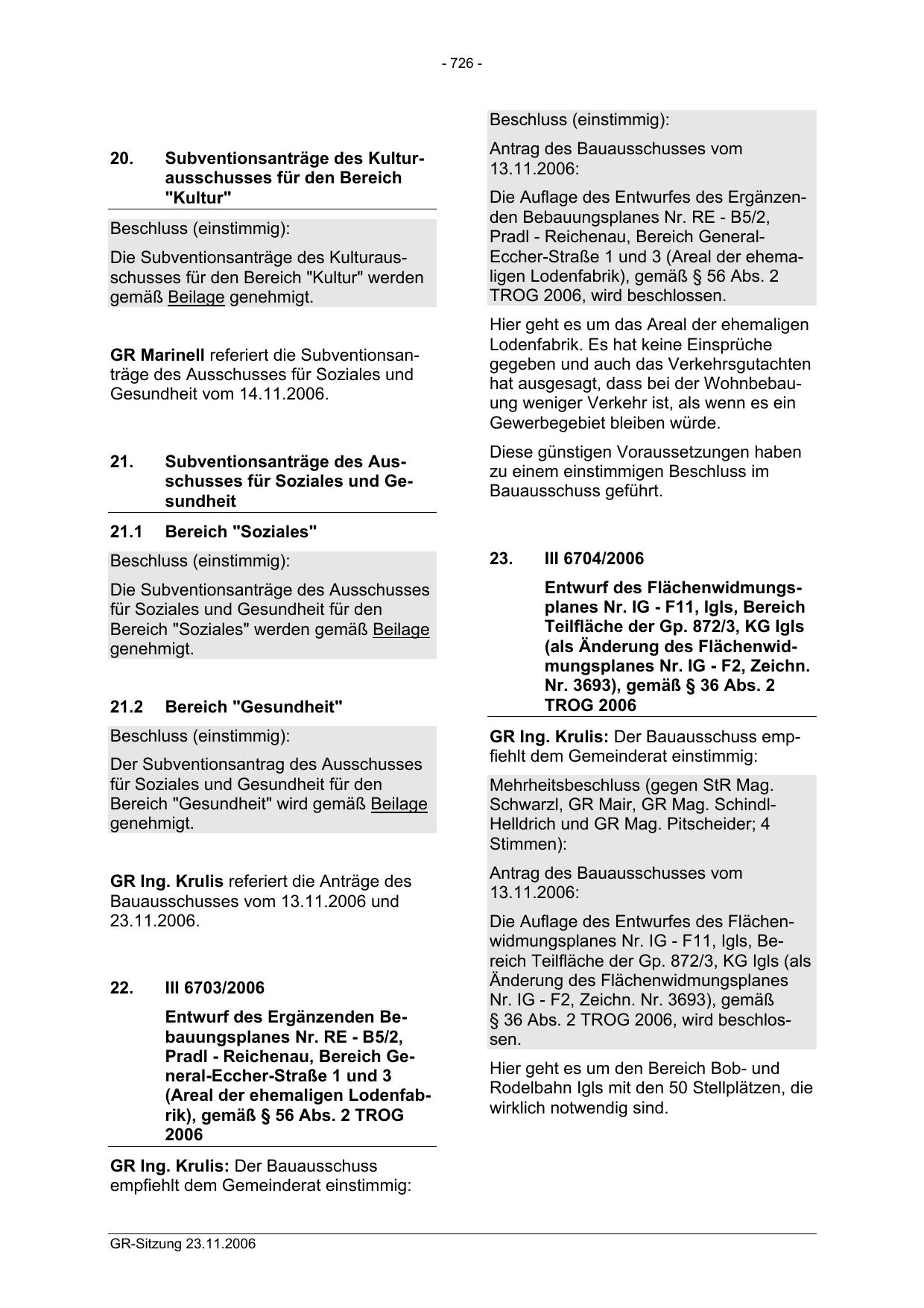 § 36 Abs. 2 TROG 2006, wird beschlossen.