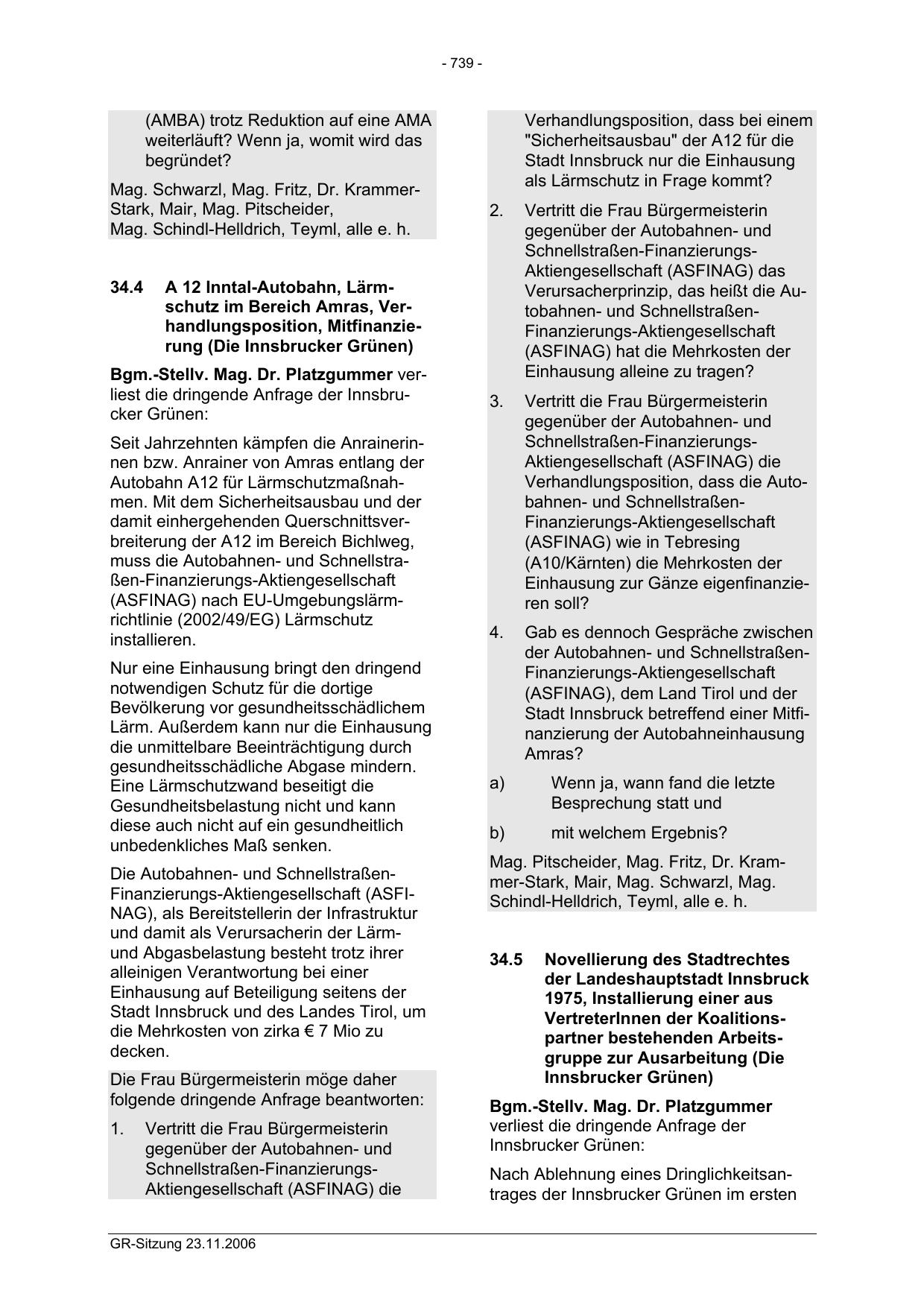 Bgm.-Stellv. Mag. Dr. Platzgummer verliest die dringende Anfrage der Innsbrucker Grünen: