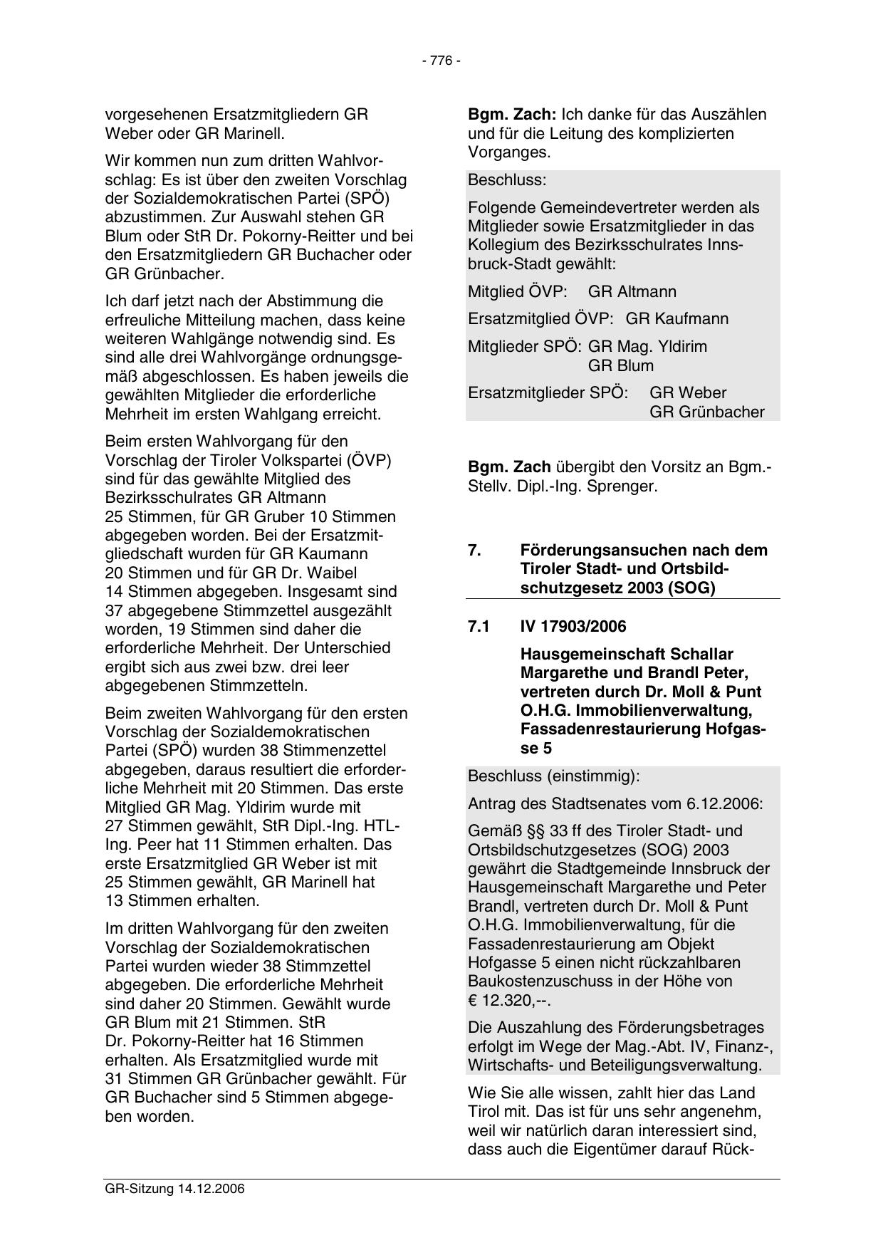 Blum oder StR Dr. Pokorny-Reitter und bei