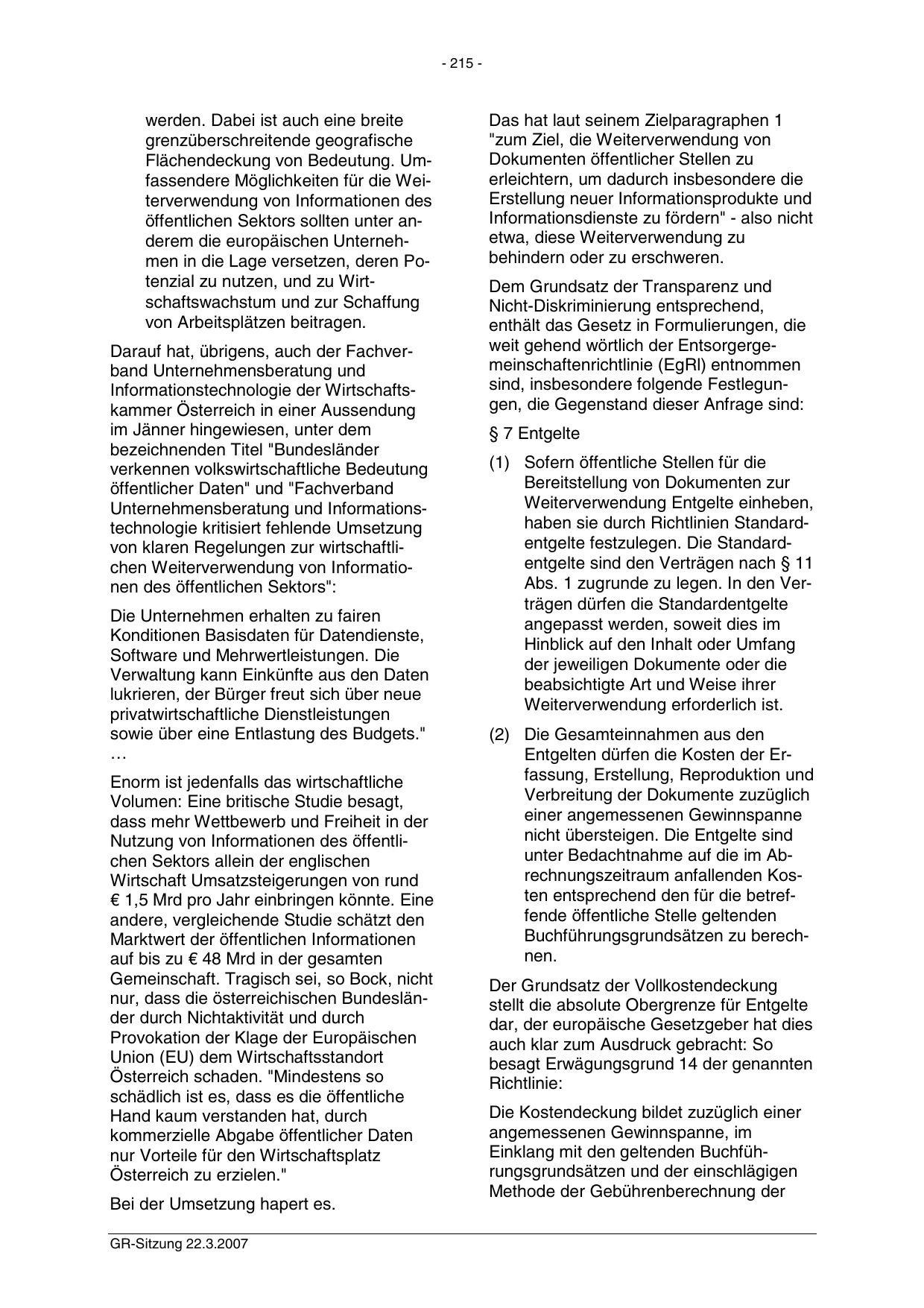 Flächendeckung von Bedeutung. Umfassendere Möglichkeiten für die Weiterverwendung von Informationen des