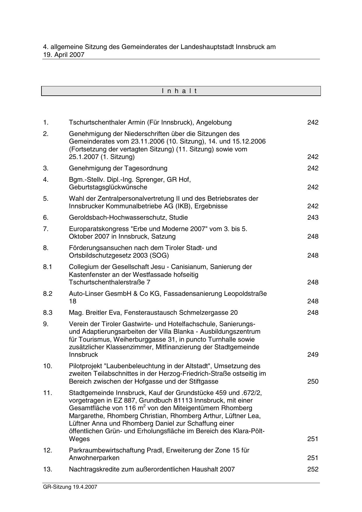 4. allgemeine Sitzung des Gemeinderates der Landeshauptstadt Innsbruck am