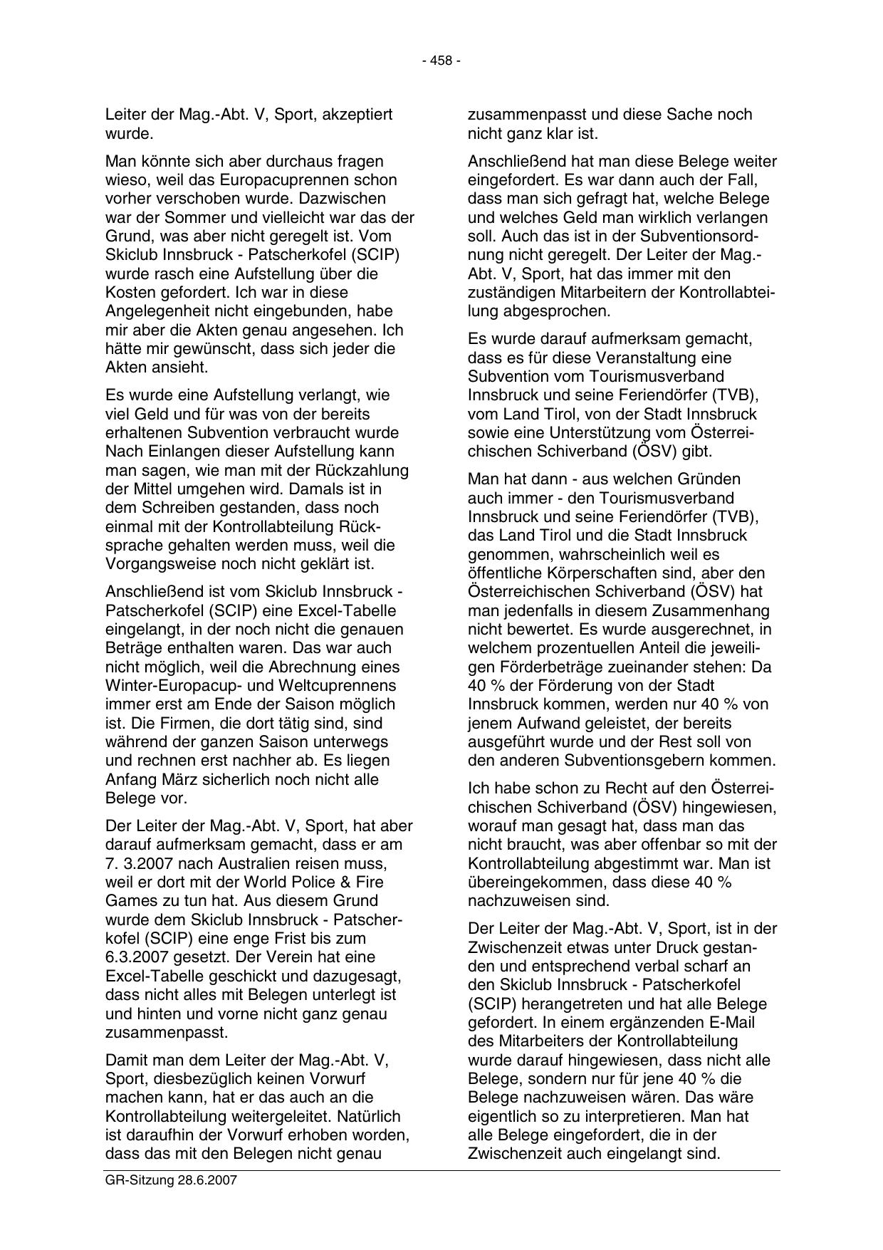 Der Leiter der Mag.-Abt. V, Sport, hat aber