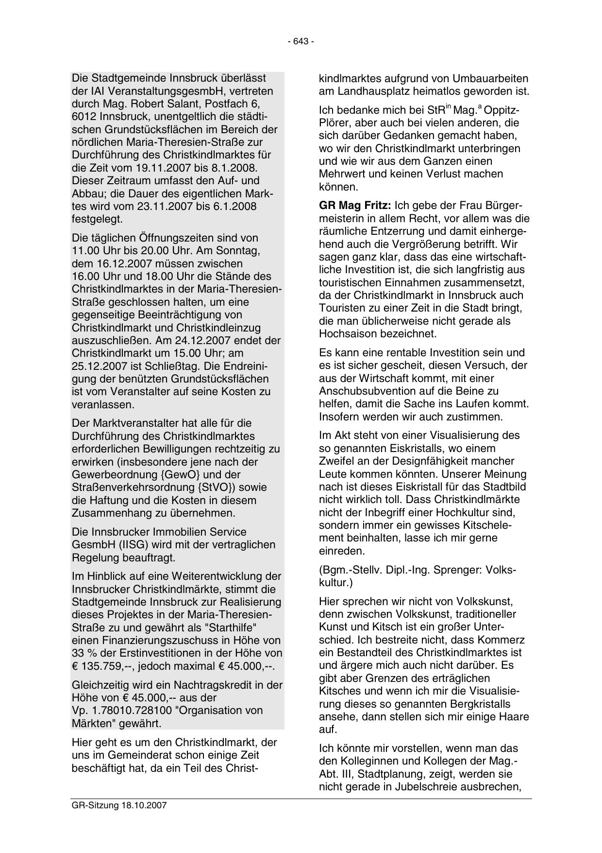GR Mag Fritz: Ich gebe der Frau Bürgermeisterin in allem Recht, vor allem was die