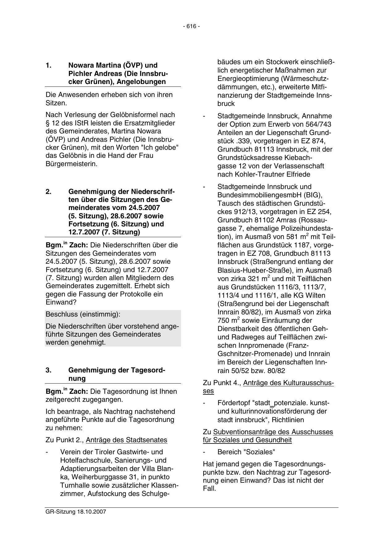 Bgm. Zach: Die Tagesordnung ist Ihnen