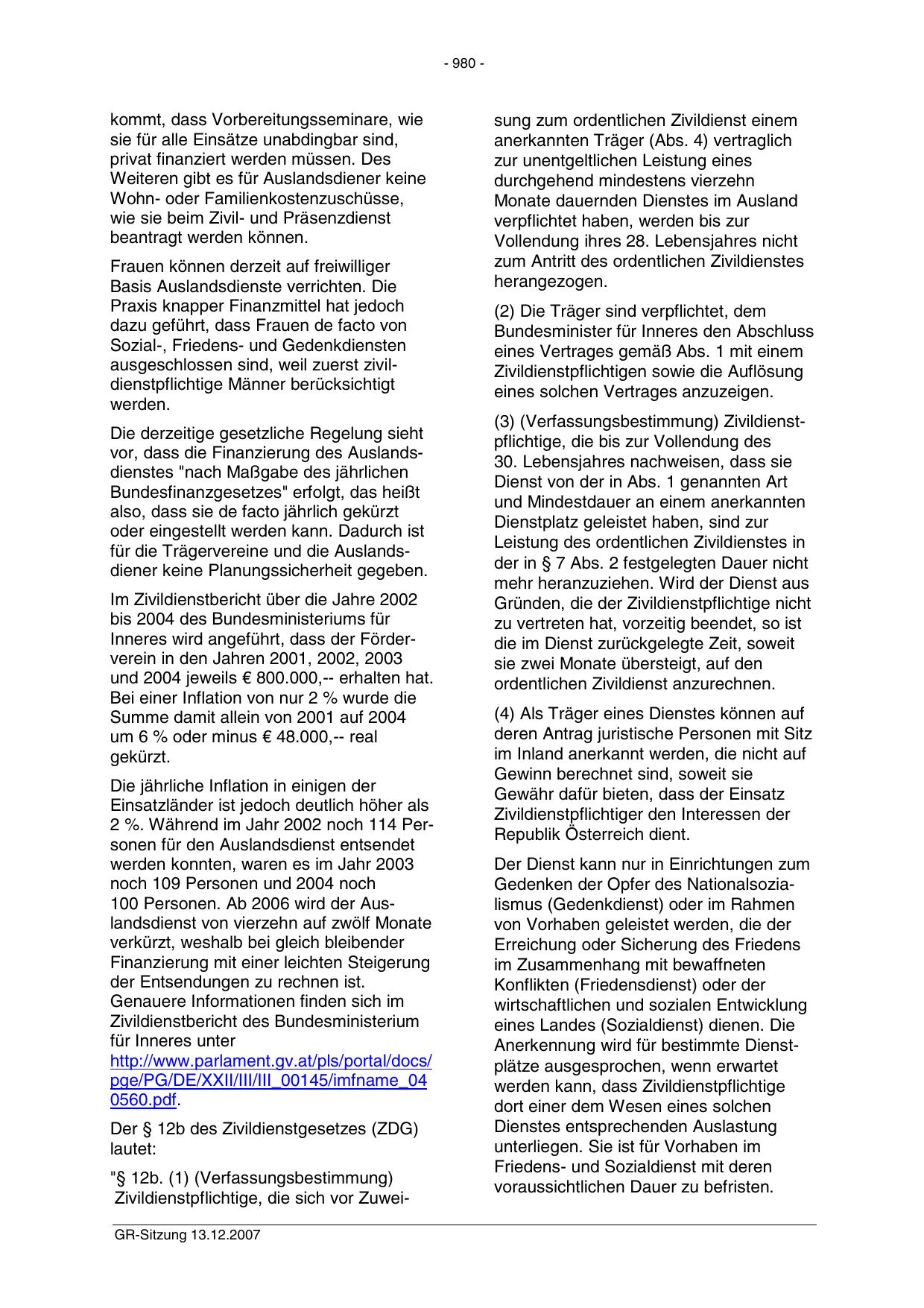Zivildienstpflichtige, die sich vor ZuweiGR-Sitzung 13.12.2007