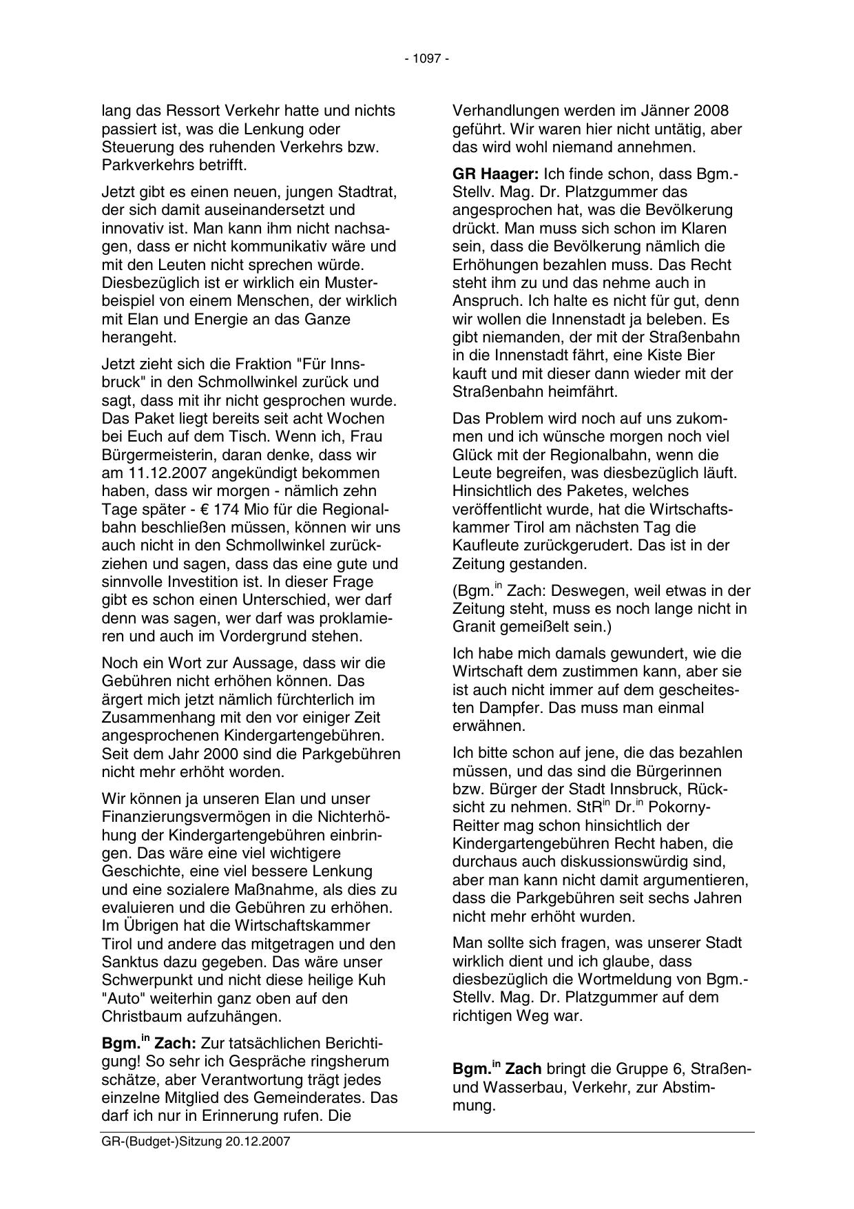 bzw. Bürger der Stadt Innsbruck, Rücksicht zu nehmen. StRin Dr.in PokornyReitter mag schon hinsichtlich der