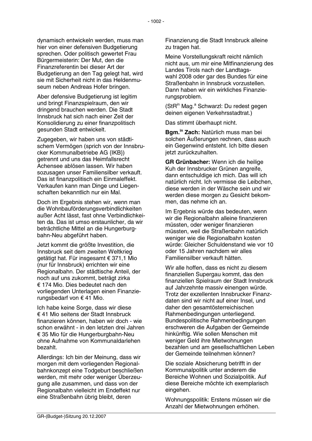 GR-(Budget-)Sitzung 20.12.2007