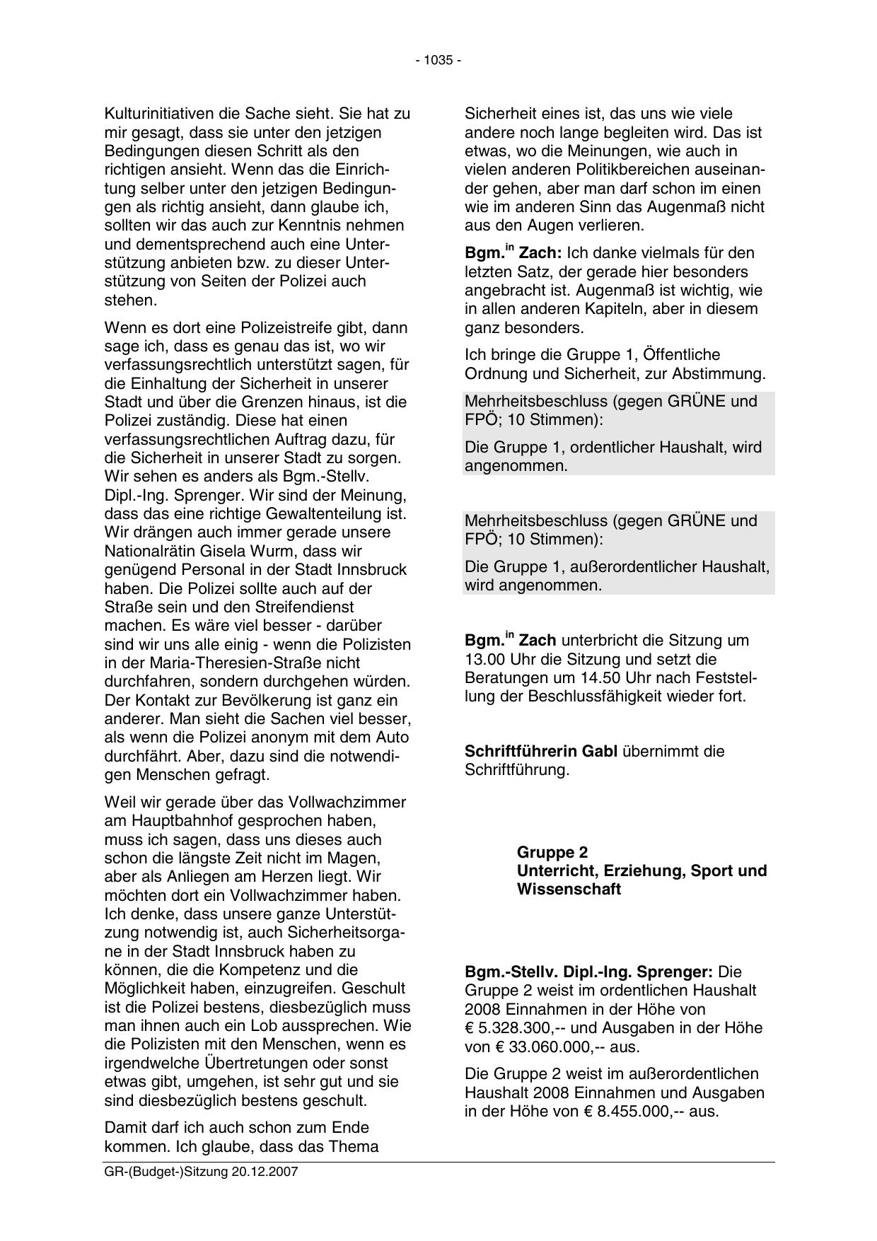 GR-(Budget-)Sitzung 20.12.2007