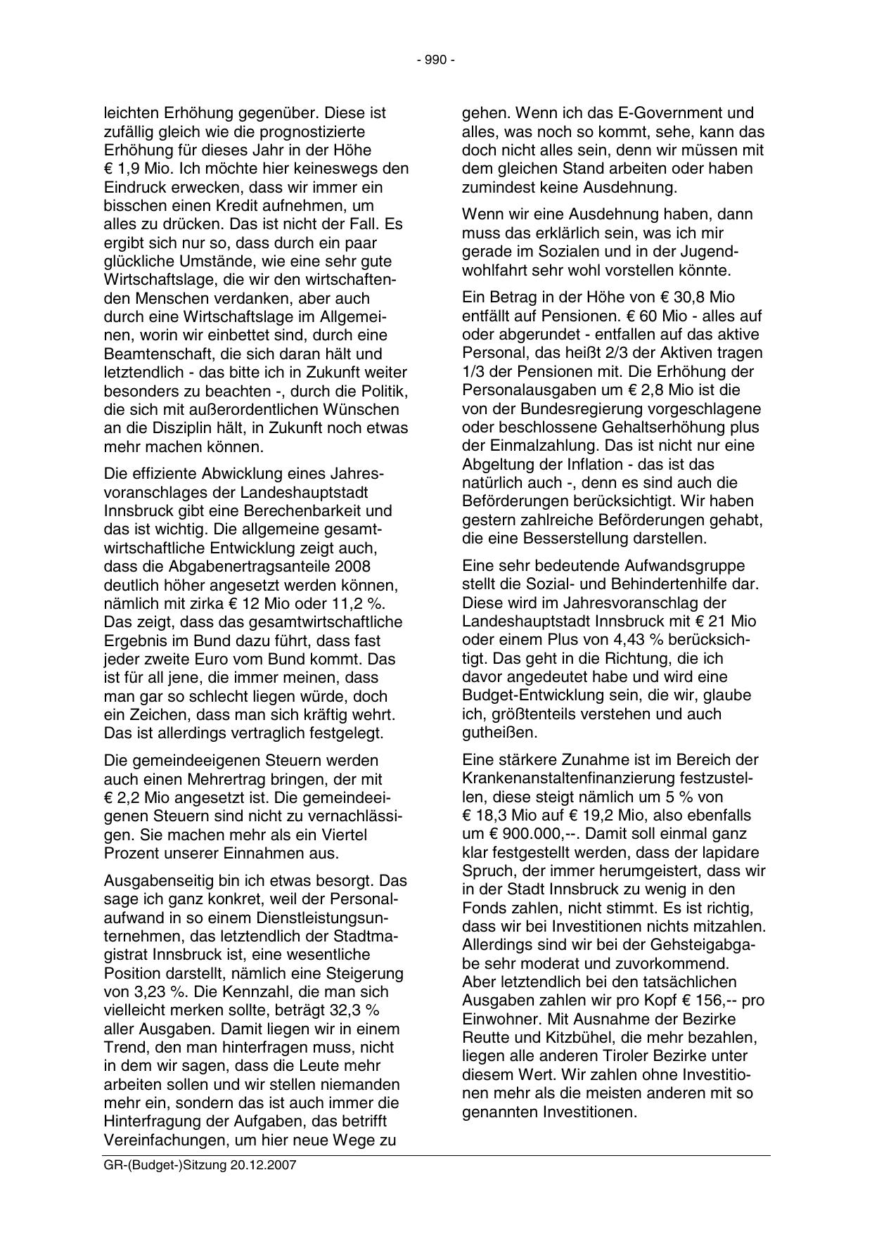 sage ich ganz konkret, weil der Personalaufwand in so einem Dienstleistungsunternehmen, das letztendlich der Stadtmagistrat Innsbruck ist, eine wesentliche