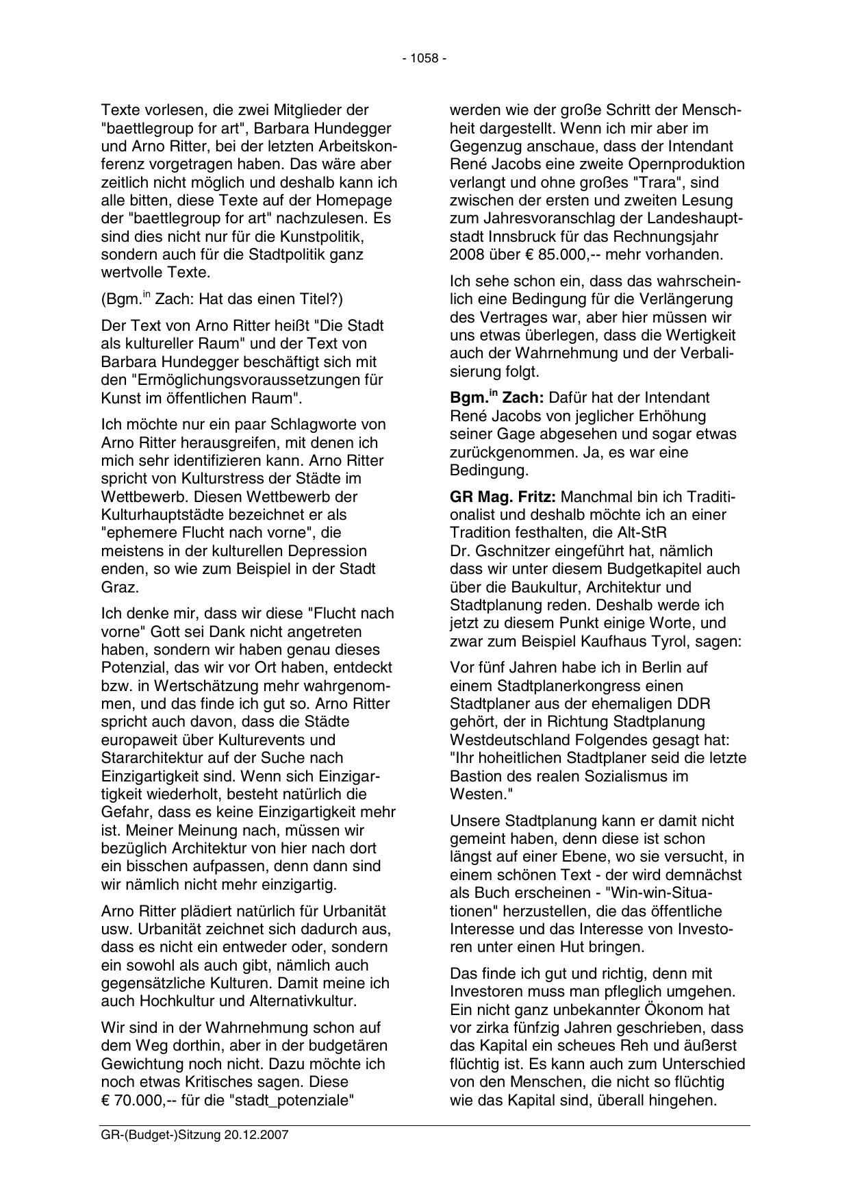 GR Mag. Fritz: Manchmal bin ich Traditionalist und deshalb möchte ich an einer