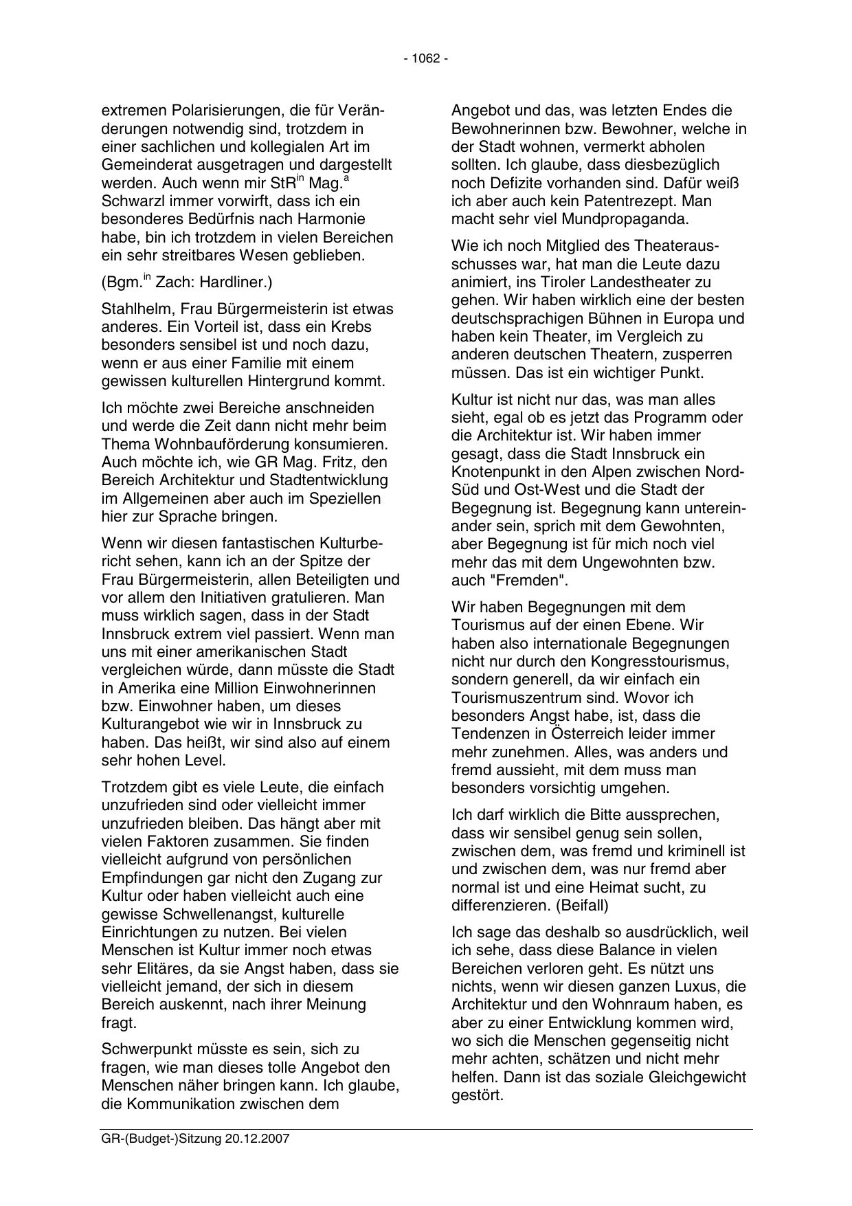 GR-(Budget-)Sitzung 20.12.2007