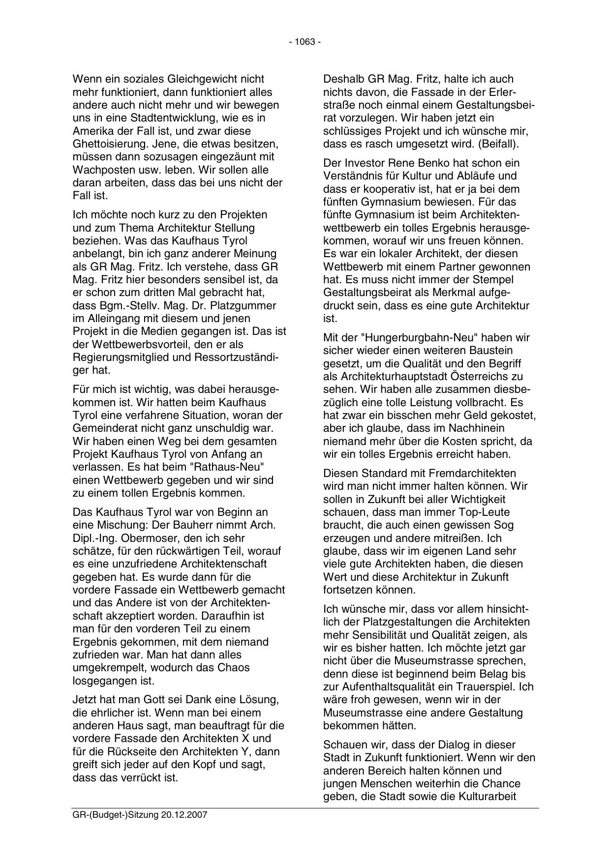 GR-(Budget-)Sitzung 20.12.2007