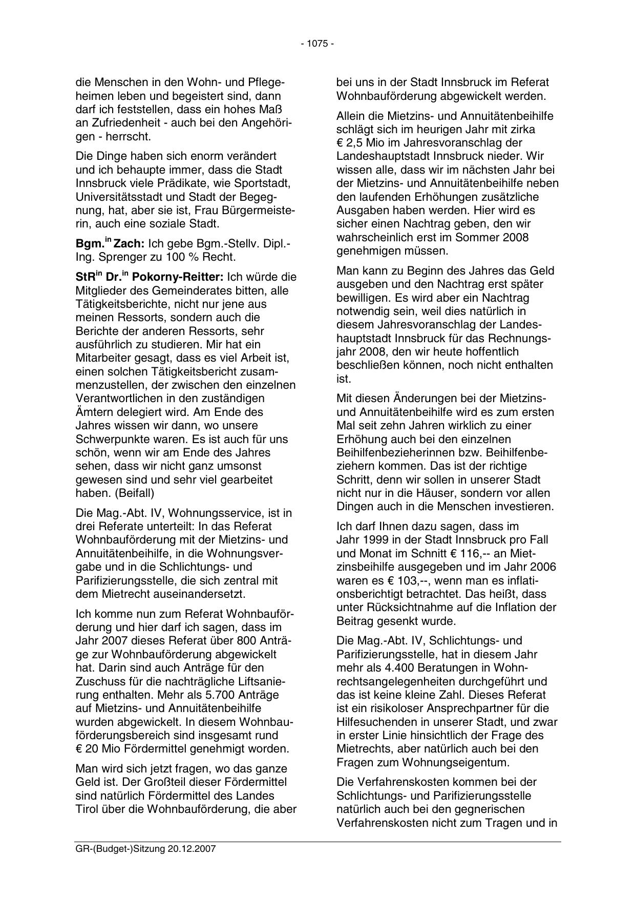 GR-(Budget-)Sitzung 20.12.2007