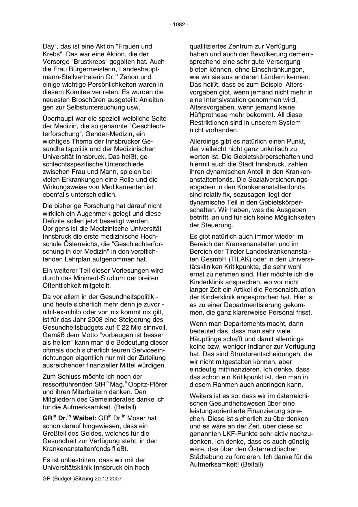 GRin Dr.in Waibel: GRin Dr.in Moser hat