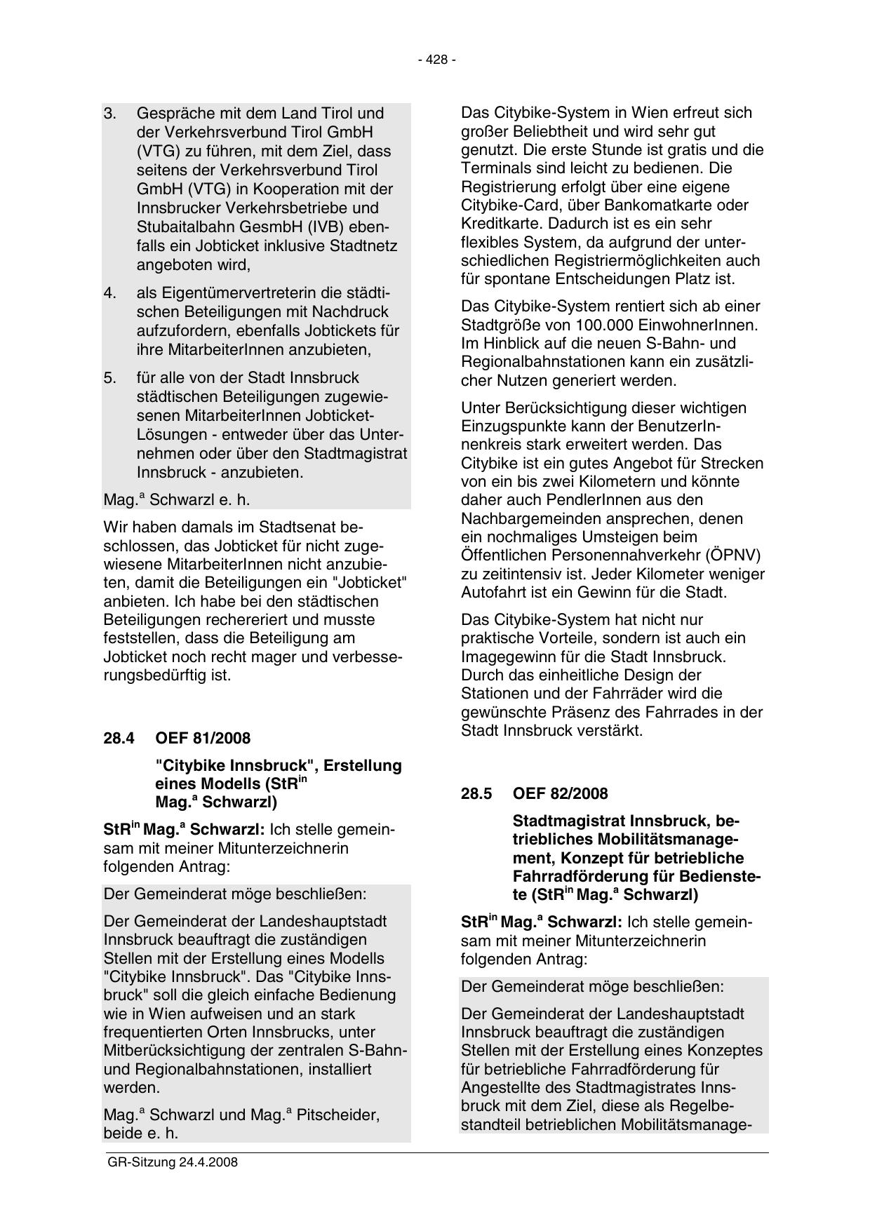Angestellte des Stadtmagistrates Innsbruck mit dem Ziel, diese als Regelbestandteil betrieblichen Mobilitätsmanage-