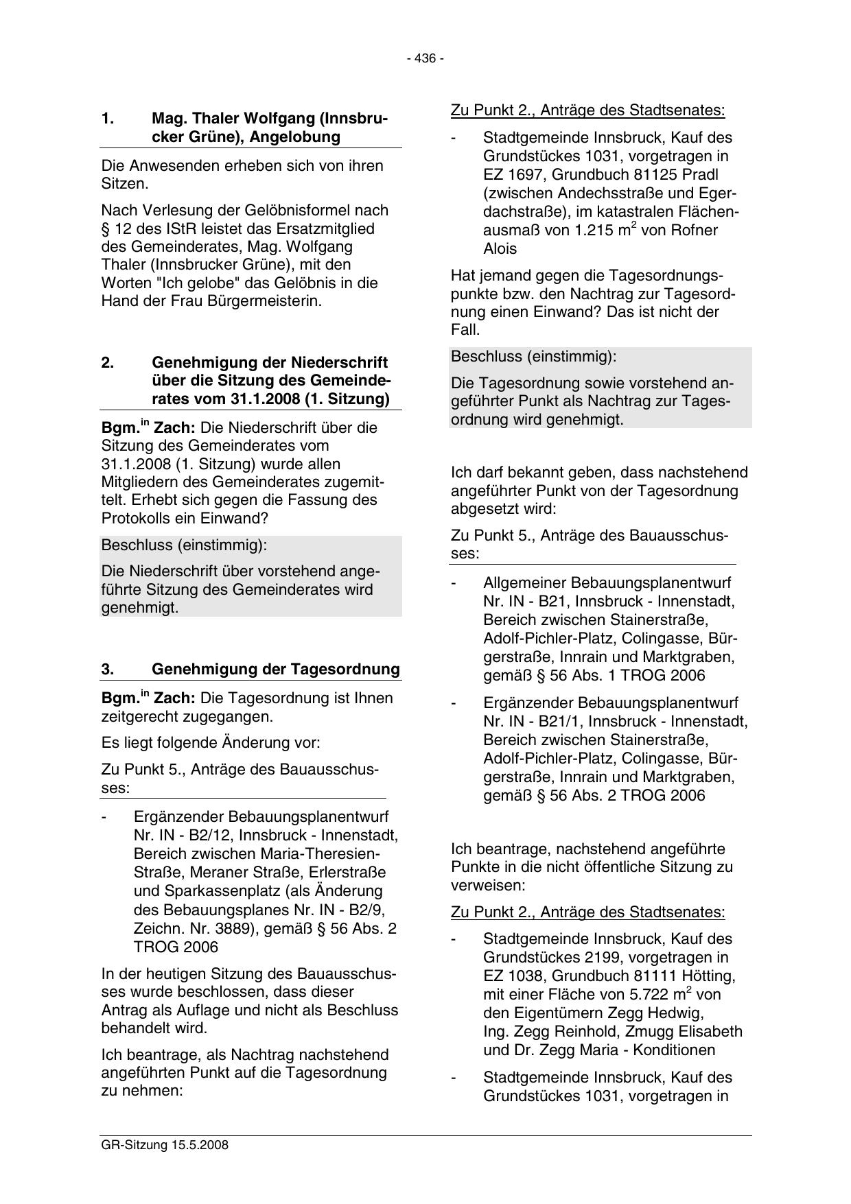 Bgm. Zach: Die Tagesordnung ist Ihnen