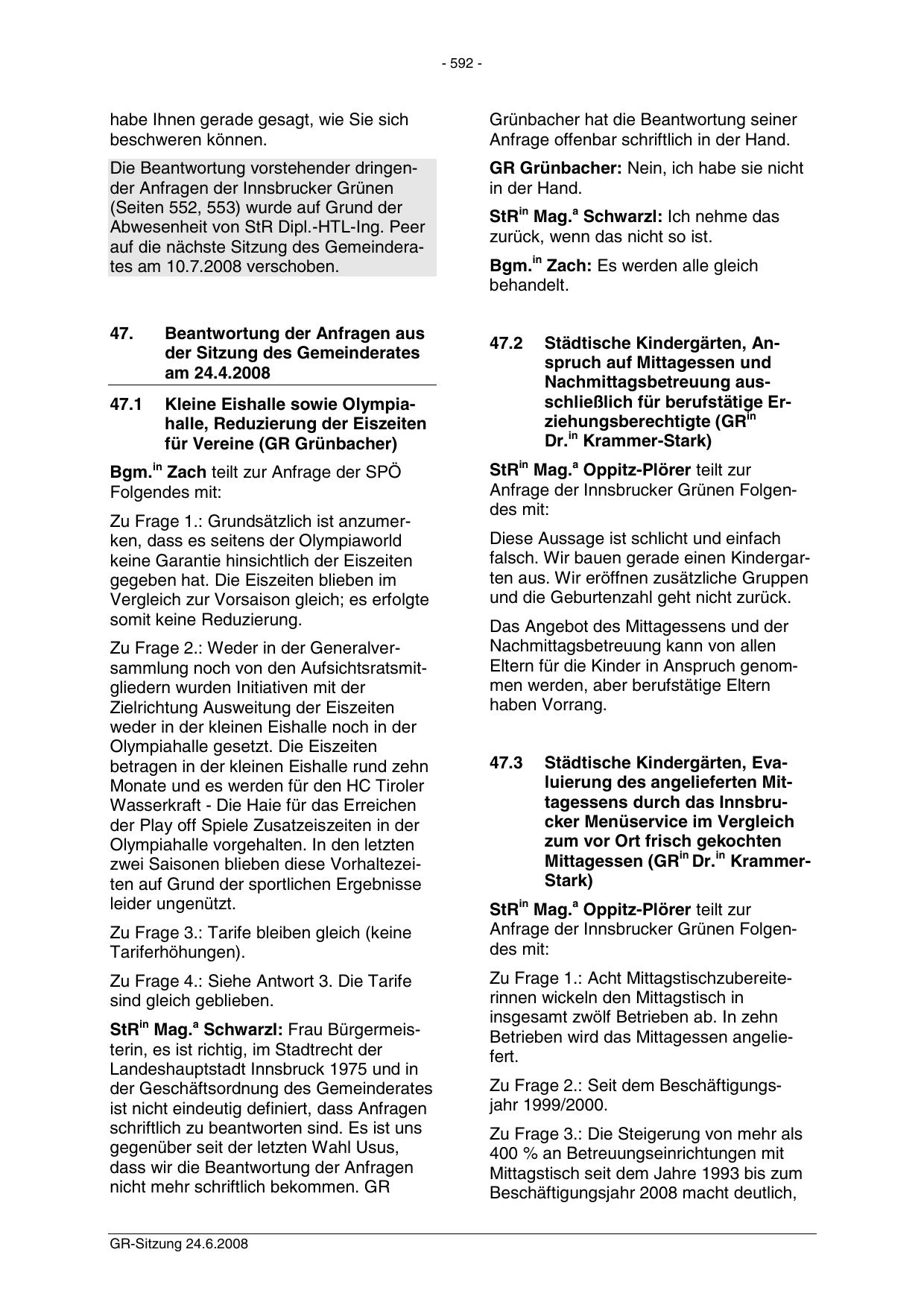 Die Beantwortung vorstehender dringender Anfragen der Innsbrucker Grünen