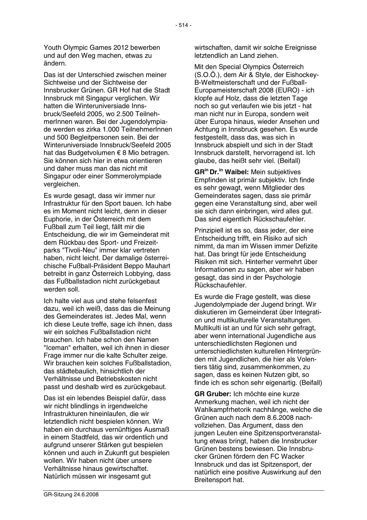 Grünen auch nach dem 8.6.2008 nachvollziehen. Das Argument, dass den