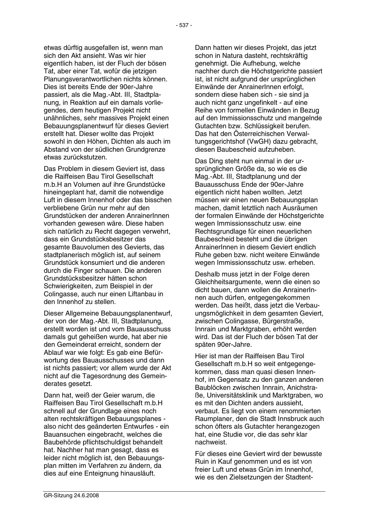 passiert, als die Mag.-Abt. III, Stadtplanung, in Reaktion auf ein damals vorliegendes, dem heutigen Projekt nicht