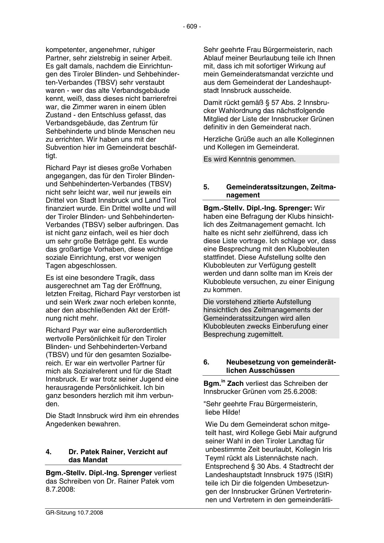 aus dem Gemeinderat der Landeshauptstadt Innsbruck ausscheide.