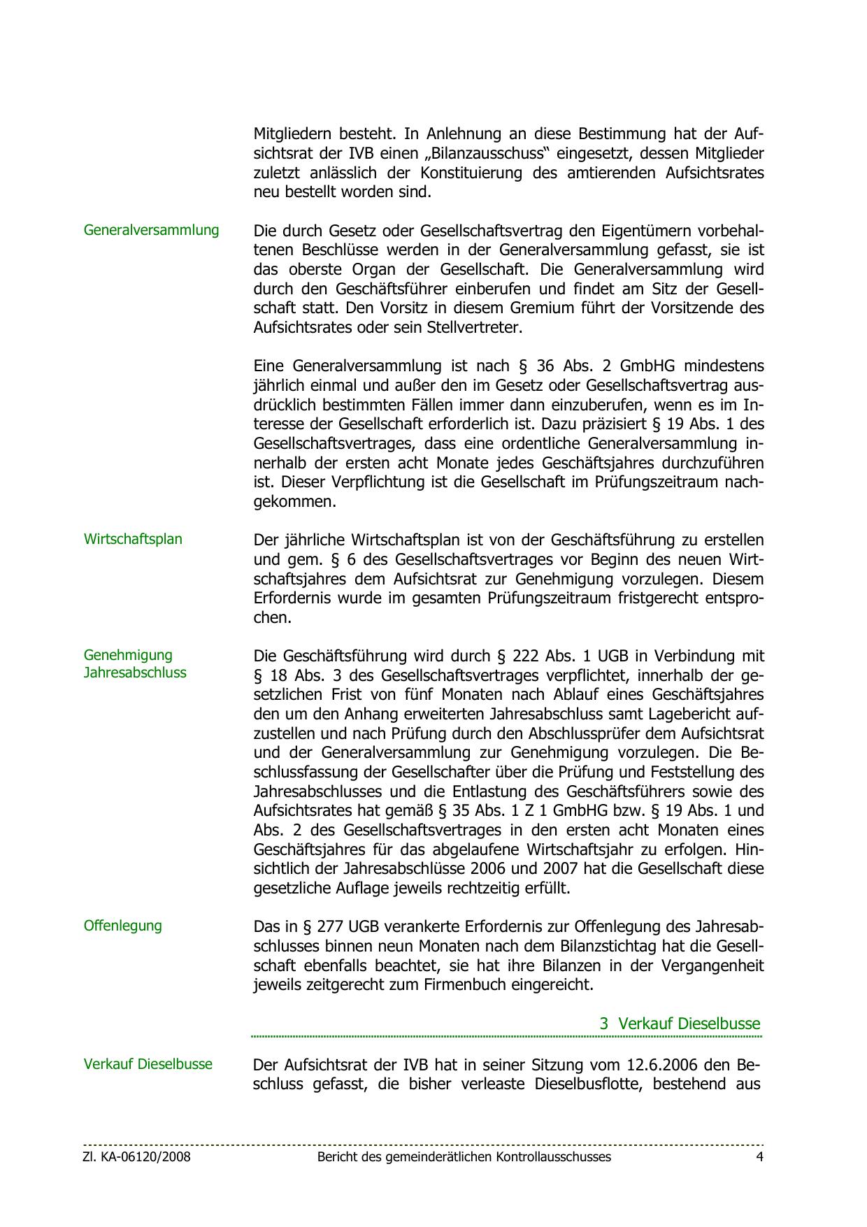 Mitgliedern besteht. In Anlehnung an diese Bestimmung hat der Aufsichtsrat der IVB einen „Bilanzausschuss“ eingesetzt, dessen Mitglieder