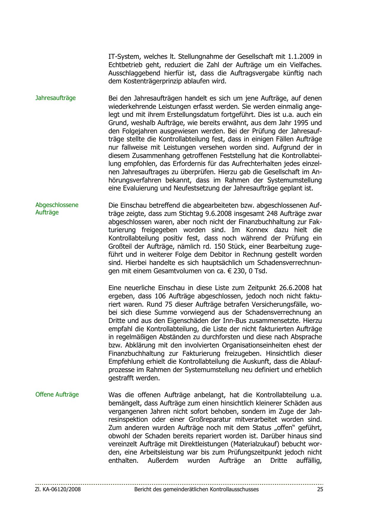 Die Einschau betreffend die abgearbeiteten bzw. abgeschlossenen Aufträge zeigte, dass zum Stichtag 9.6.2008 insgesamt 248 Aufträge zwar