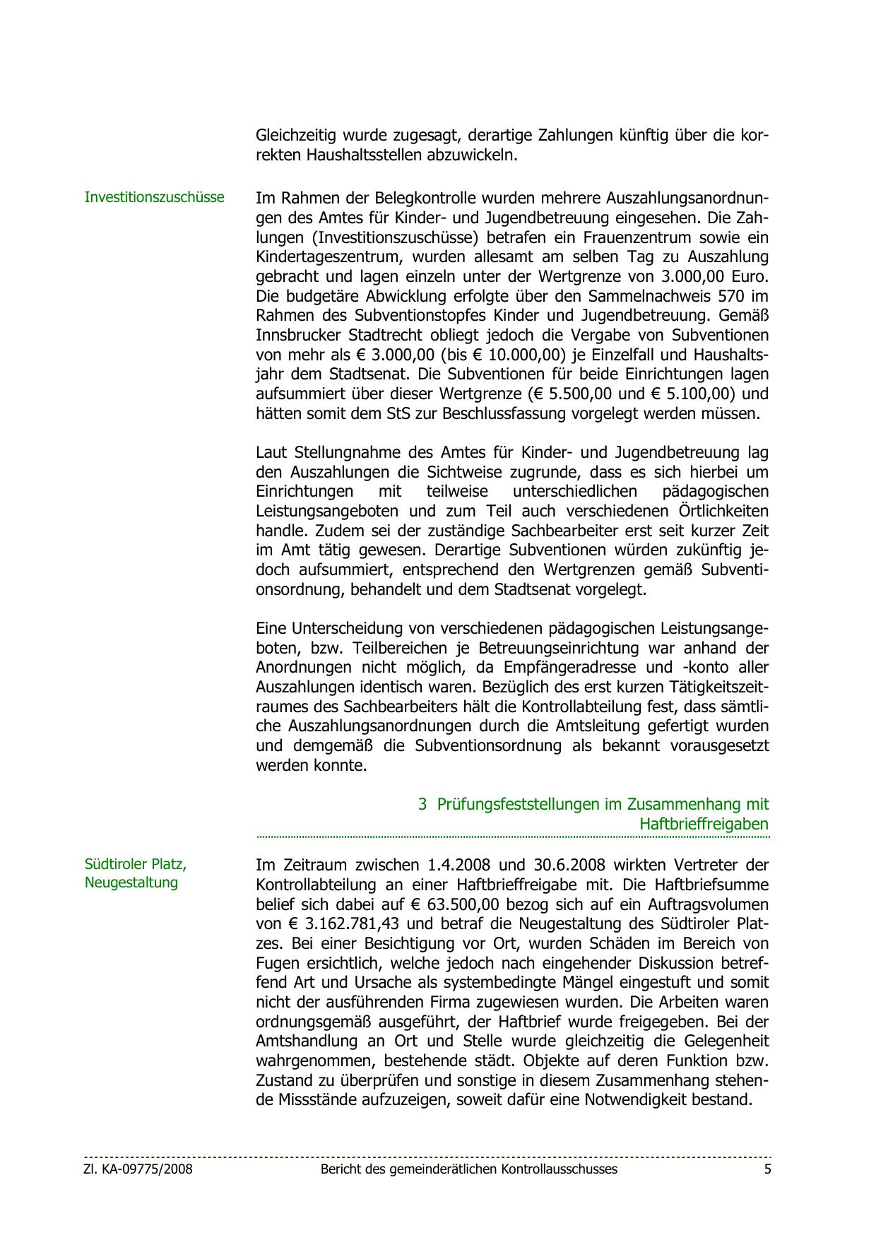 von € 3.162.781,43 und betraf die Neugestaltung des Südtiroler Platzes. Bei einer Besichtigung vor Ort, wurden Schäden im Bereich von