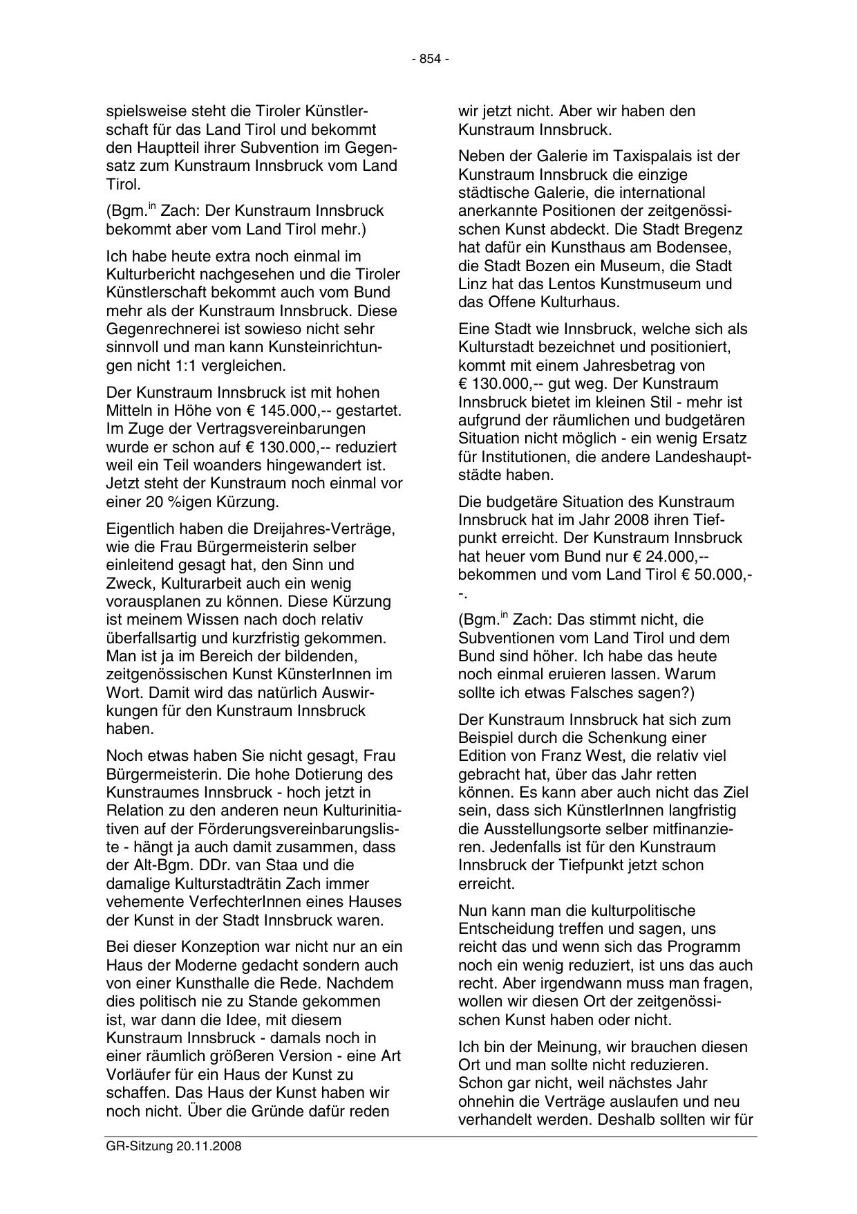 (Bgm.in Zach: Der Kunstraum Innsbruck