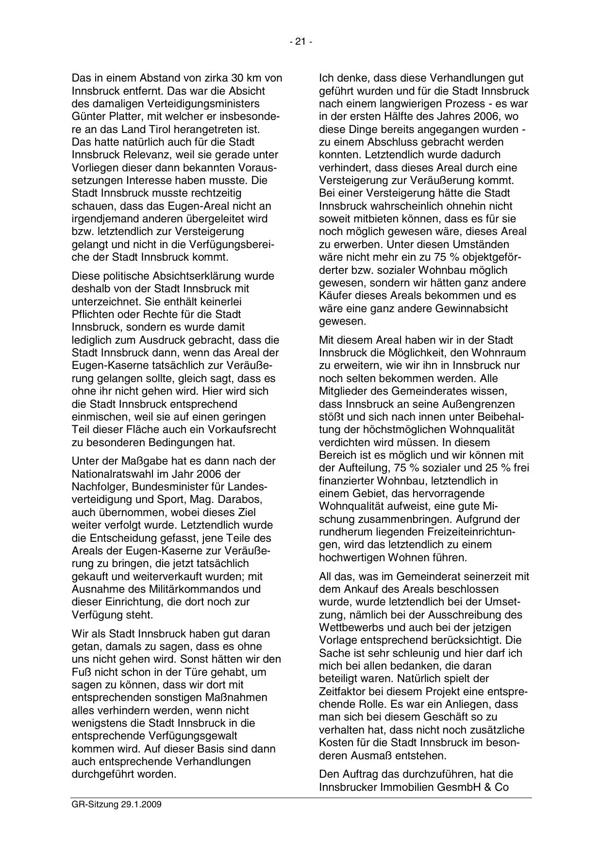 Eugen-Kaserne tatsächlich zur Veräußerung gelangen sollte, gleich sagt, dass es