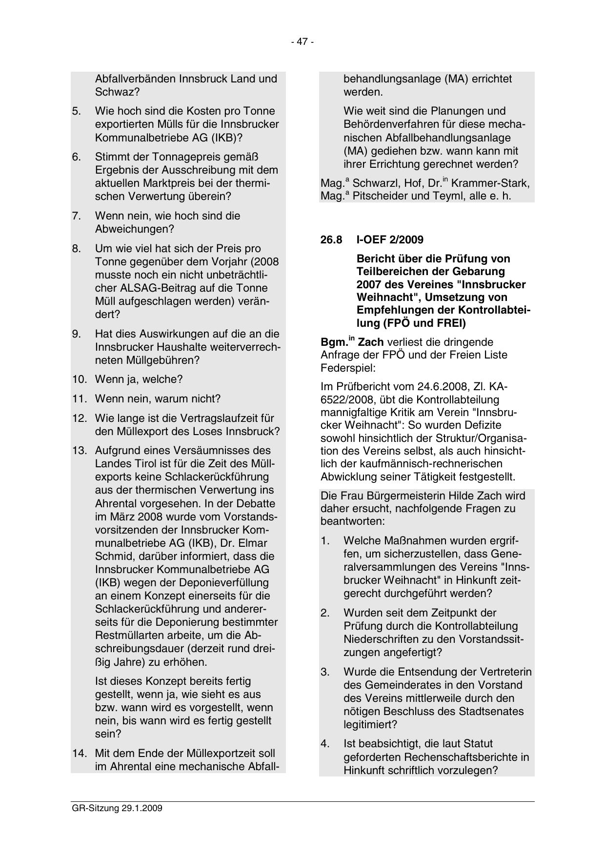 Empfehlungen der Kontrollabteilung (FPÖ und FREI)