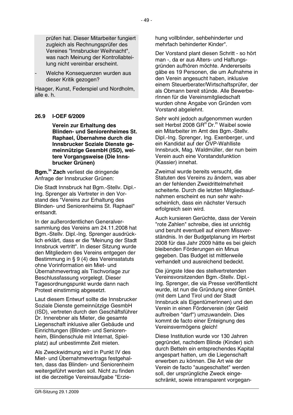 Innsbrucker Soziale Dienste gemeinnützige GesmbH (ISD), weitere Vorgangsweise (Die Innsbrucker Grünen)