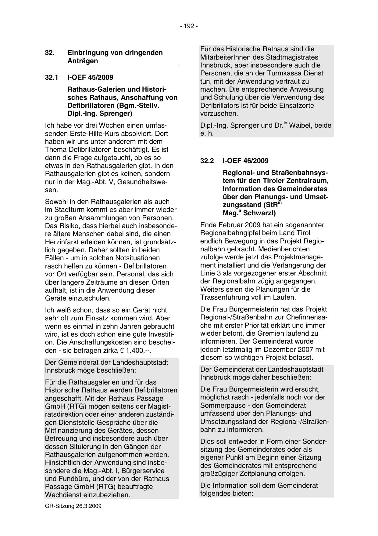 Dies soll entweder in Form einer Sondersitzung des Gemeinderates oder als