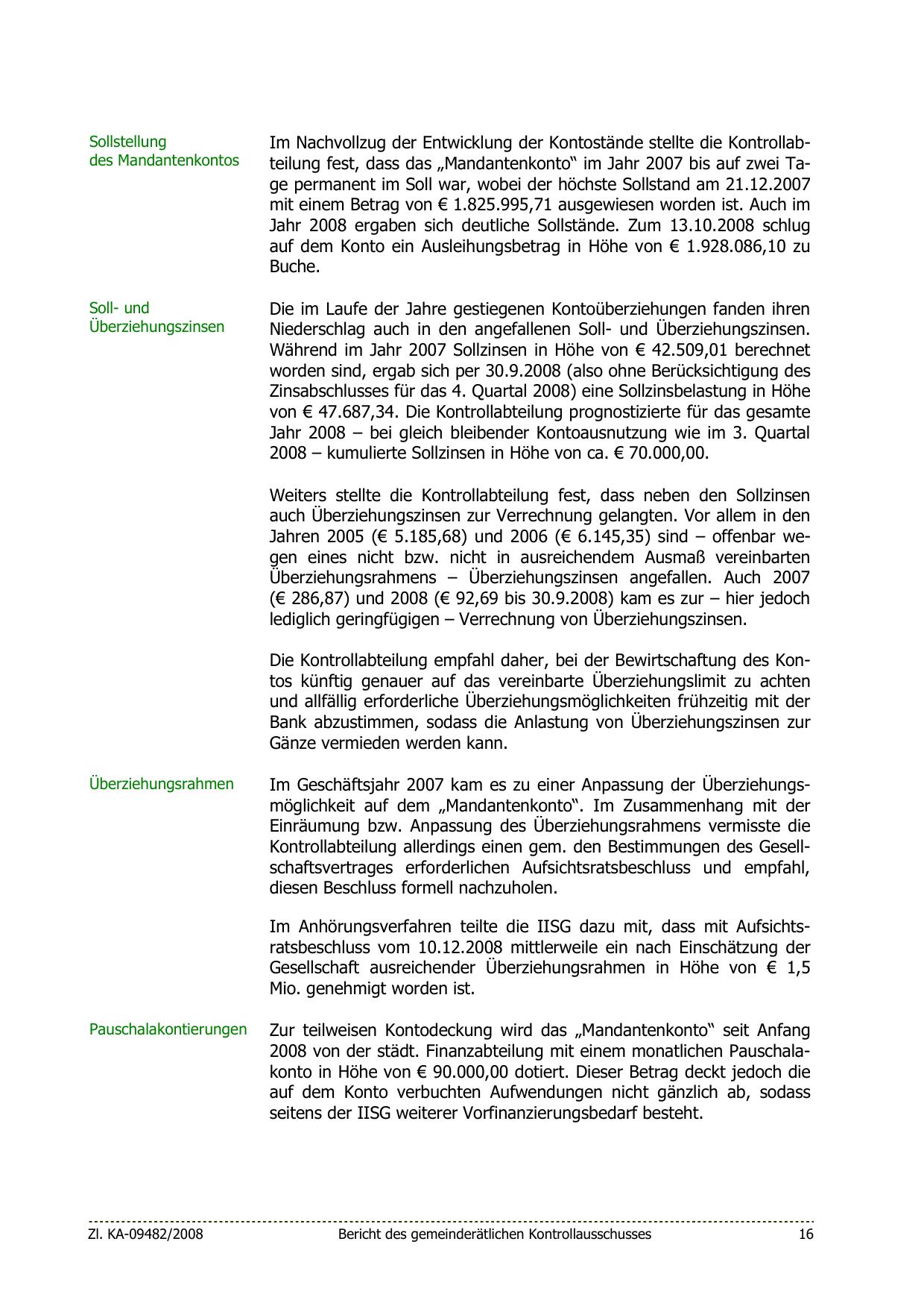 Im Anhörungsverfahren teilte die IISG dazu mit, dass mit Aufsichtsratsbeschluss vom 10.12.2008 mittlerweile ein nach Einschätzung der
