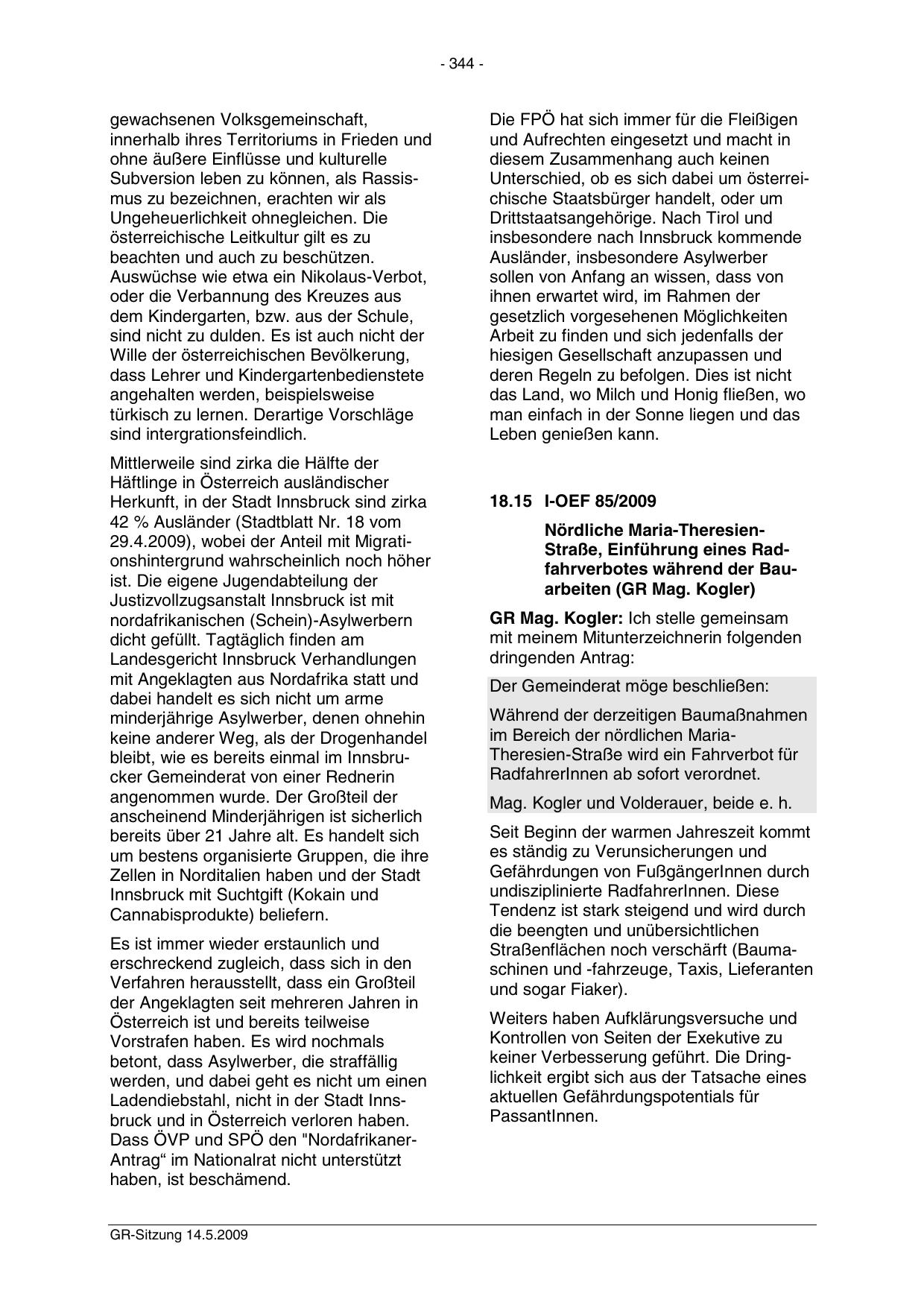 bleibt, wie es bereits einmal im Innsbrucker Gemeinderat von einer Rednerin
