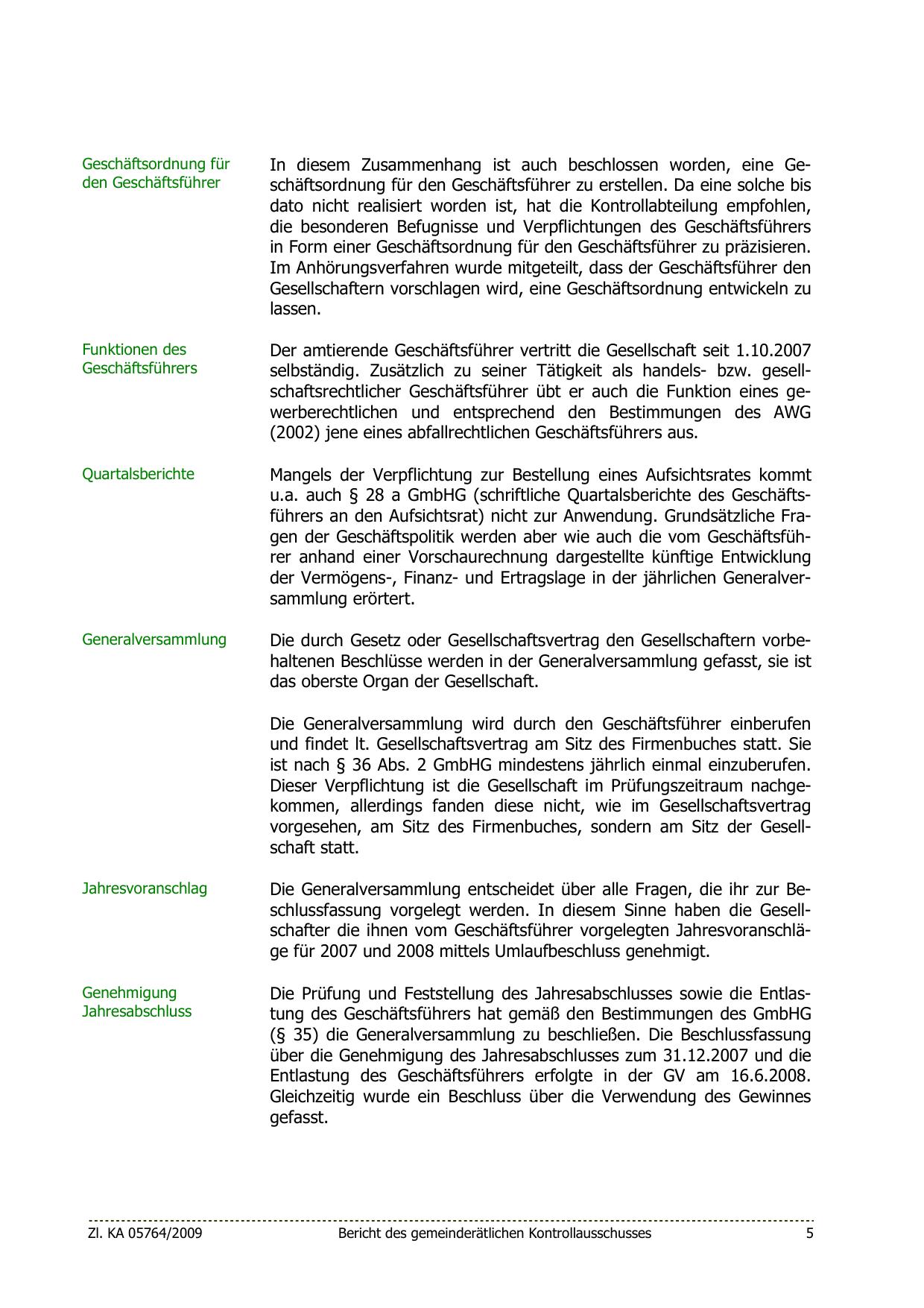 u.a. auch § 28 a GmbHG (schriftliche Quartalsberichte des Geschäftsführers an den Aufsichtsrat) nicht zur Anwendung. Grundsätzliche Fragen der Geschäftspolitik werden aber wie auch die vom Geschäftsführer anhand einer Vorschaurechnung dargestellte künftige Entwicklung