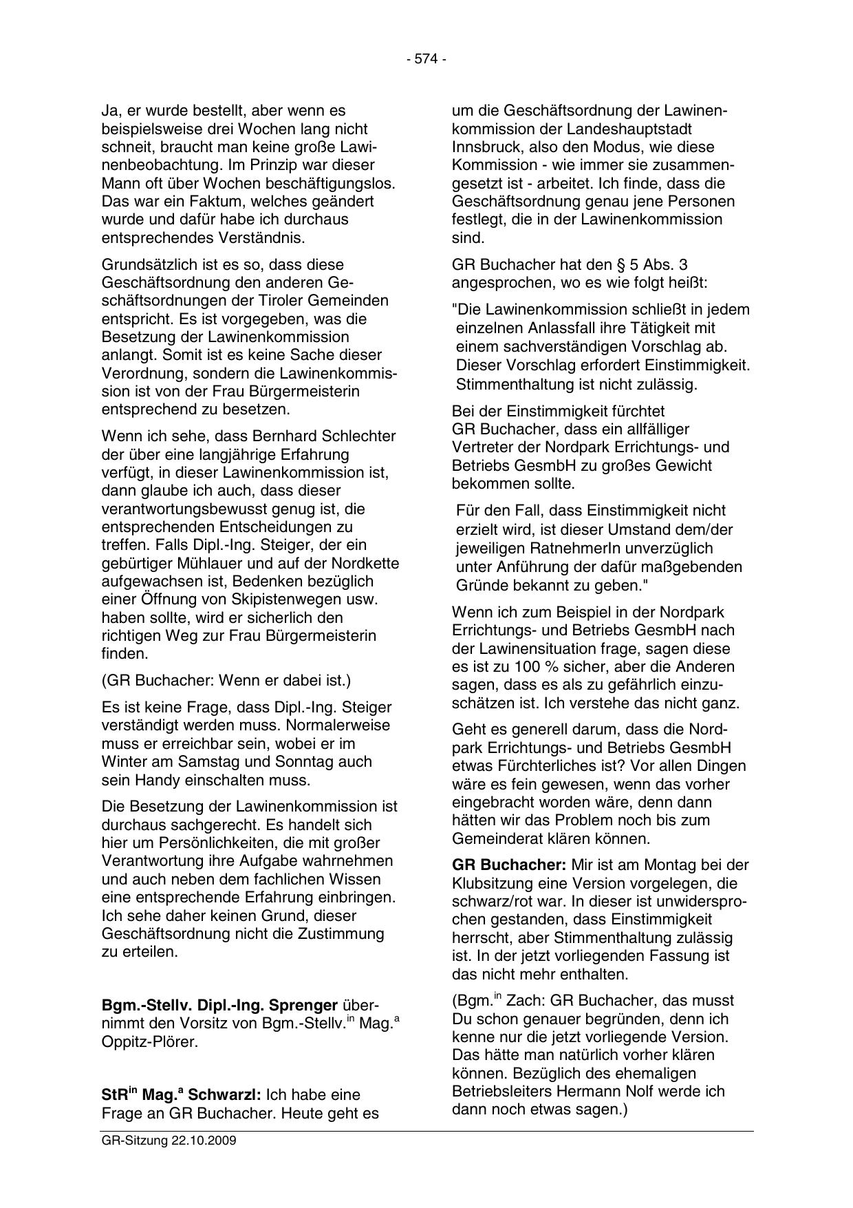 um die Geschäftsordnung der Lawinenkommission der Landeshauptstadt
