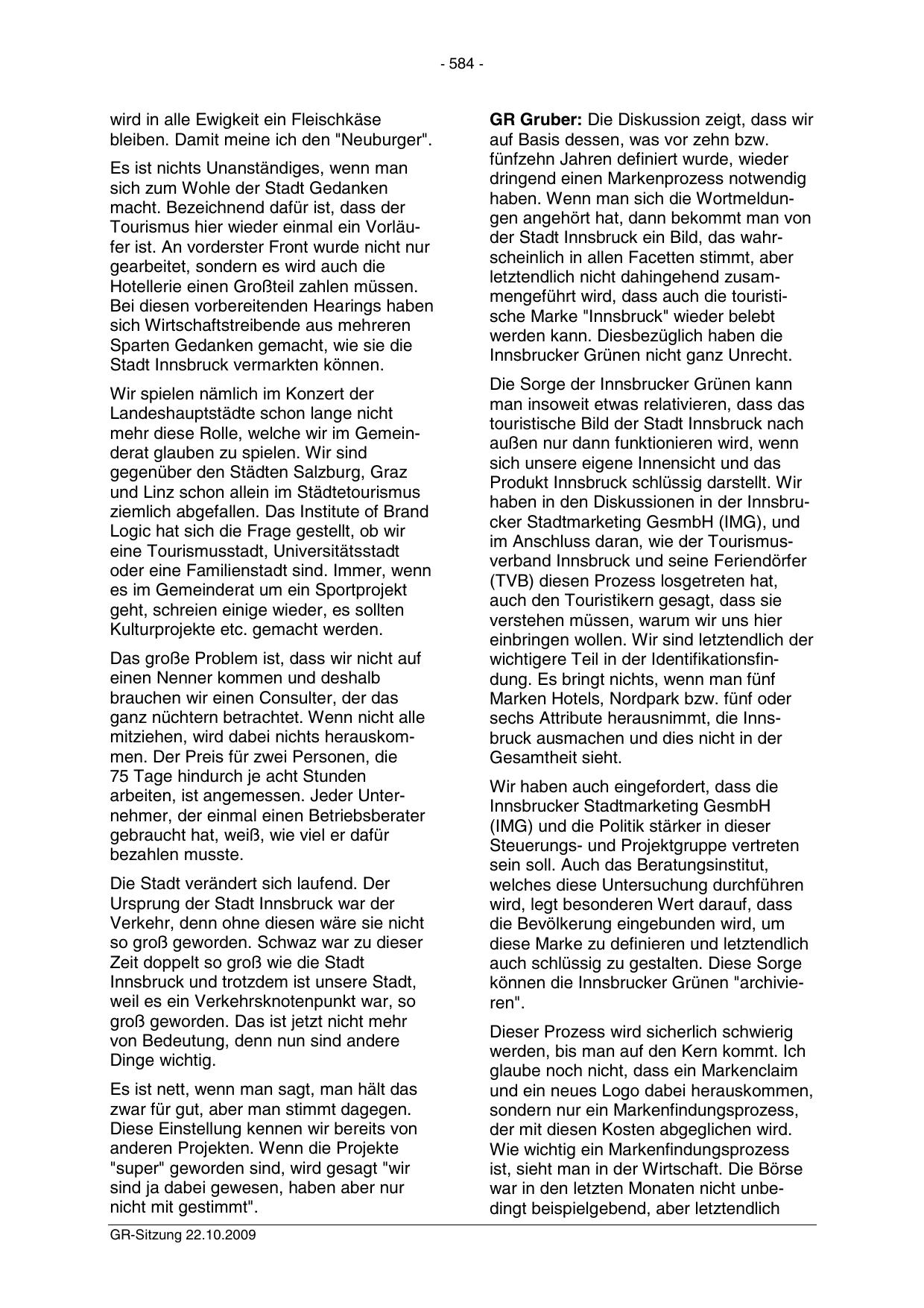 letztendlich nicht dahingehend zusammengeführt wird, dass auch die touristische Marke "Innsbruck" wieder belebt