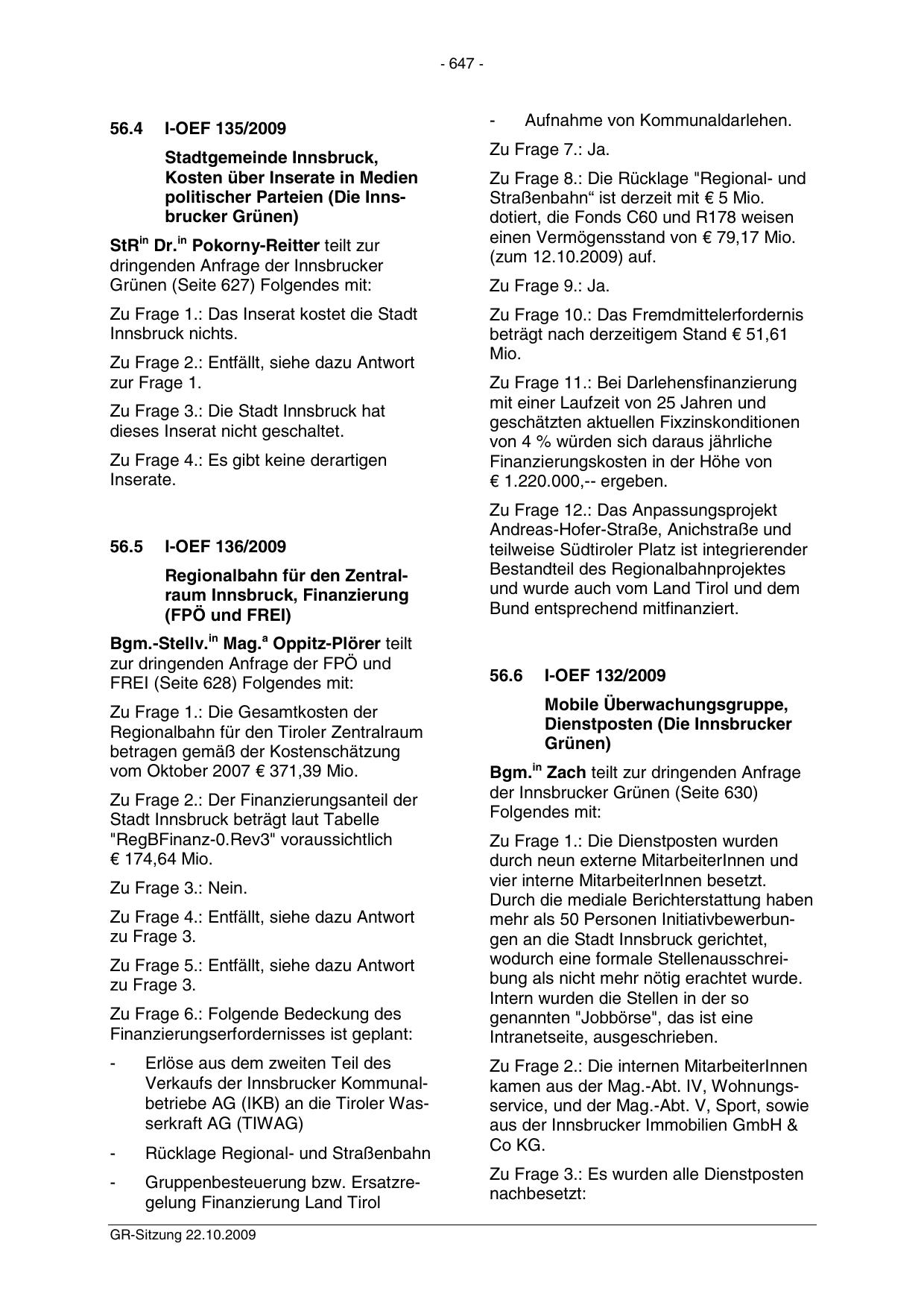 Zu Frage 3.: Die Stadt Innsbruck hat