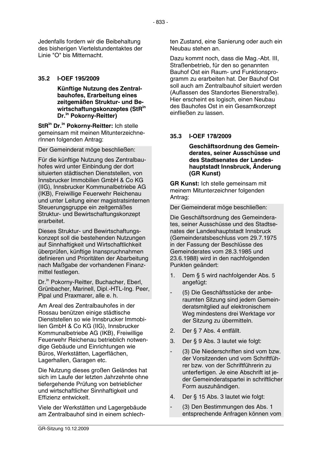 am Zentralbauhof sind in einem schlechGR-Sitzung 10.12.2009