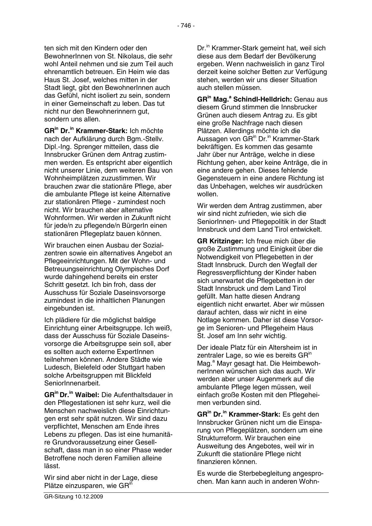 Innsbrucker Grünen nicht um die Einsparung von Pflegeplätzen, sondern um eine