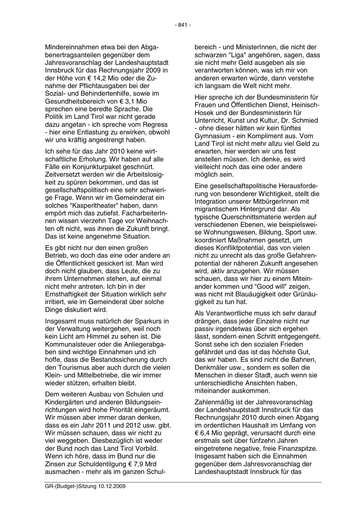 ausmachen - mehr als im ganzen SchulGR-(Budget-)Sitzung 10.12.2009